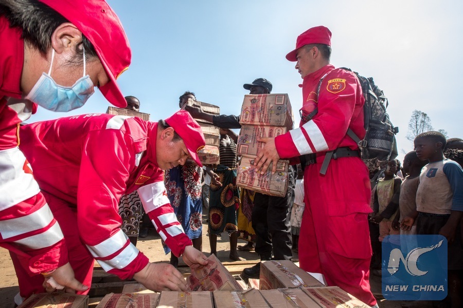 BEIRA, Mozambique, March 29 (Xinhua) -- Chinese rescuers donated food and drinking water for hundreds of children at an orphanage and a community school in central Mozambique on Thursday.