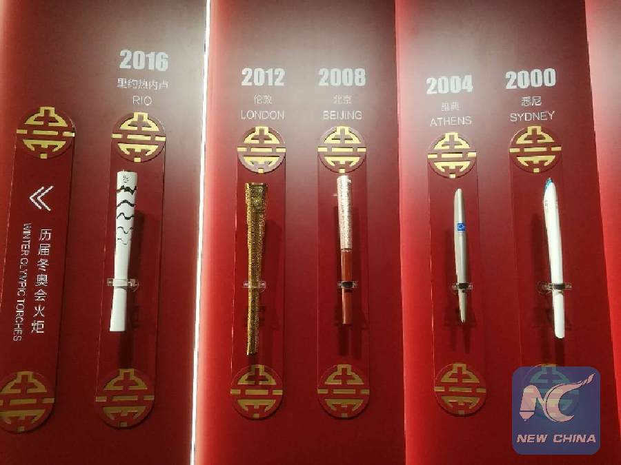 Winter Olympic torches are exhibited in the 2019 Olympic Expo.(Xinhua/Gao Peng)