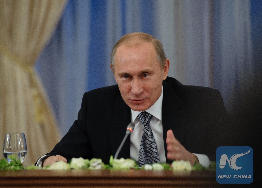 File Photo: Russian President Vladimir Putin speaks during a meeting of the Valdai international discussion club of scholars in the Novo-Ogaryovo residence, outside Moscow, Russia, on Oct. 25, 2012. (Xinhua/Jiang Kehong)