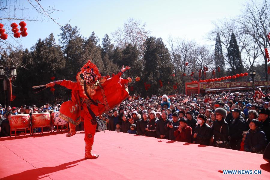 A folk artist performs Sichuan Opera face-changing during a Spring Festival temple fair at Ditan Park in Beijing, capital of China, Feb. 16, 2018. China will hold the Conference on Dialogue of Asian Civilizations starting from May 15. Under the theme of "exchanges and mutual learning among Asian civilizations and a community with a shared future," the conference includes an opening ceremony and sub-forums. (Xinhua/Chen Xiaogen)