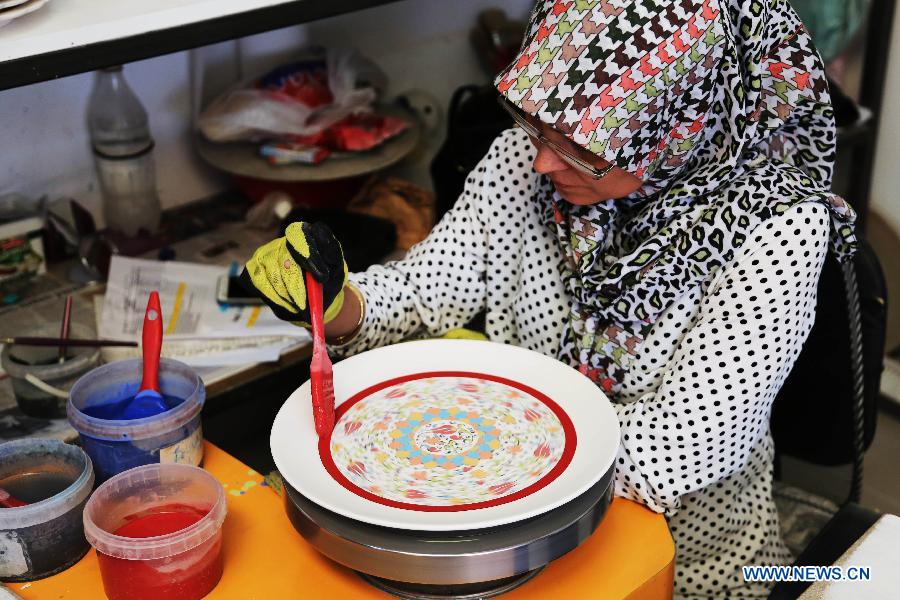 An artist paints on a Cini base at a factory in Kutahay, Turkey, April 25, 2017. Cini is a kind of traditional faience pottery making industry originated in China. China will hold the Conference on Dialogue of Asian Civilizations starting from May 15. Under the theme of "exchanges and mutual learning among Asian civilizations and a community with a shared future," the conference includes an opening ceremony and sub-forums. (Xinhua/Qin Yanyang)