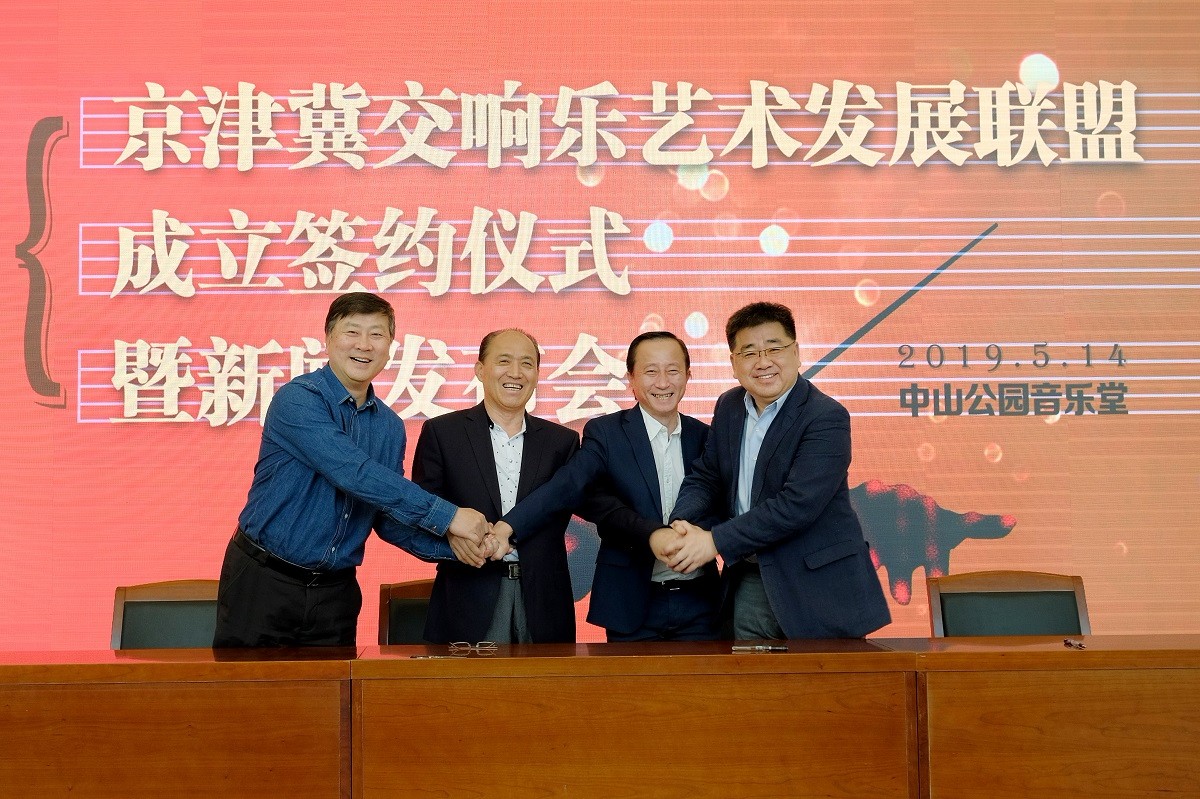 Photo taken on May 14th, 2019 shows the signing ceremony of the alliance formed by Poly Theatre Management Co., Ltd and symphony orchestras from Beijing, Tianjin and Hebei. (Poly Theatre Management Co., Ltd)