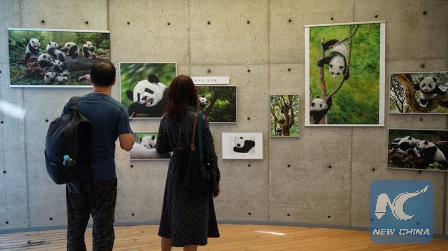 Visitors view exhibits during a photo exhibition on giant panda in an art gallery in Tokyo, Japan, May 20, 2019. (Xinhua/Liang Saiyu)