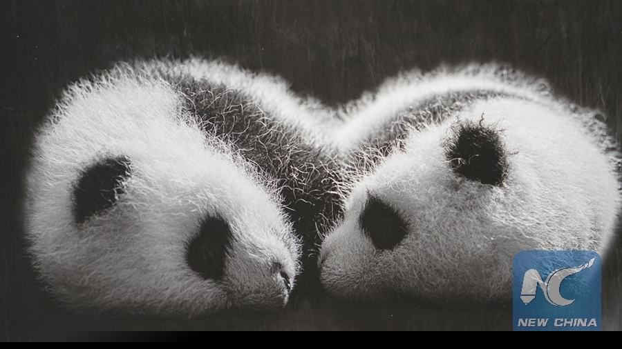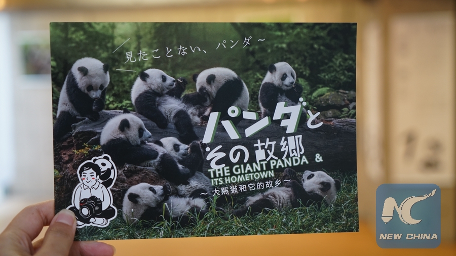 TOKYO, May 20 (Xinhua) -- "This might be the only color photo of a giant panda," said Chinese photographer Zhou Mengqi, pointing to a photo of a fluffy cub spitting out its pink tongue.