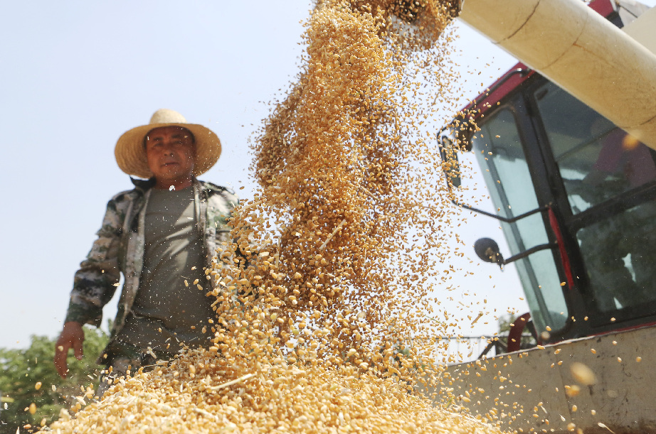 Farmers harvest wheat using agricultural machinery at Zhangzhuang Village of Zhangshanzi Township in Zaozhuang City, east China's Shandong Province, June 2, 2019. (Xinhua)