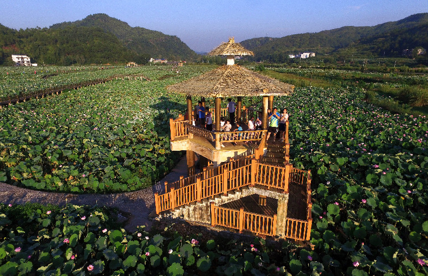 Tourists enjoy the scenery at Shicheng County, east China's Jiangxi Province, July 23, 2017. (Xinhua/Peng Zhaozhi)