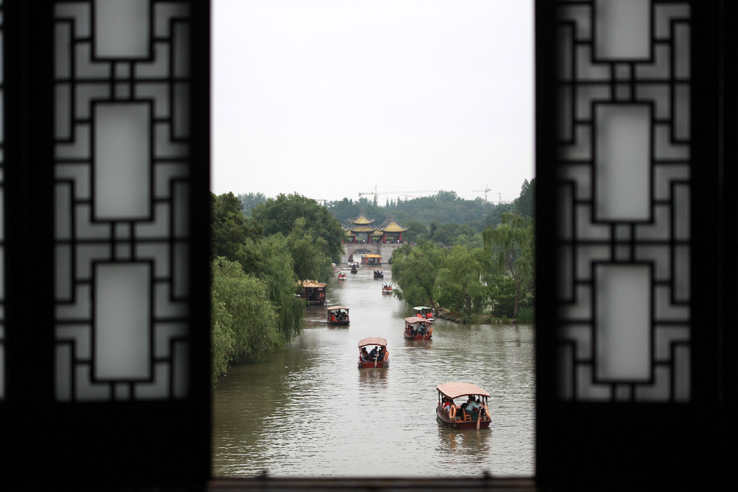 Tourists visit Slender West Lake in Yangzhou City, east China's Jiangsu Province, on May 19, 2019, China Tourism Day. (Xinhua/Meng Delong)