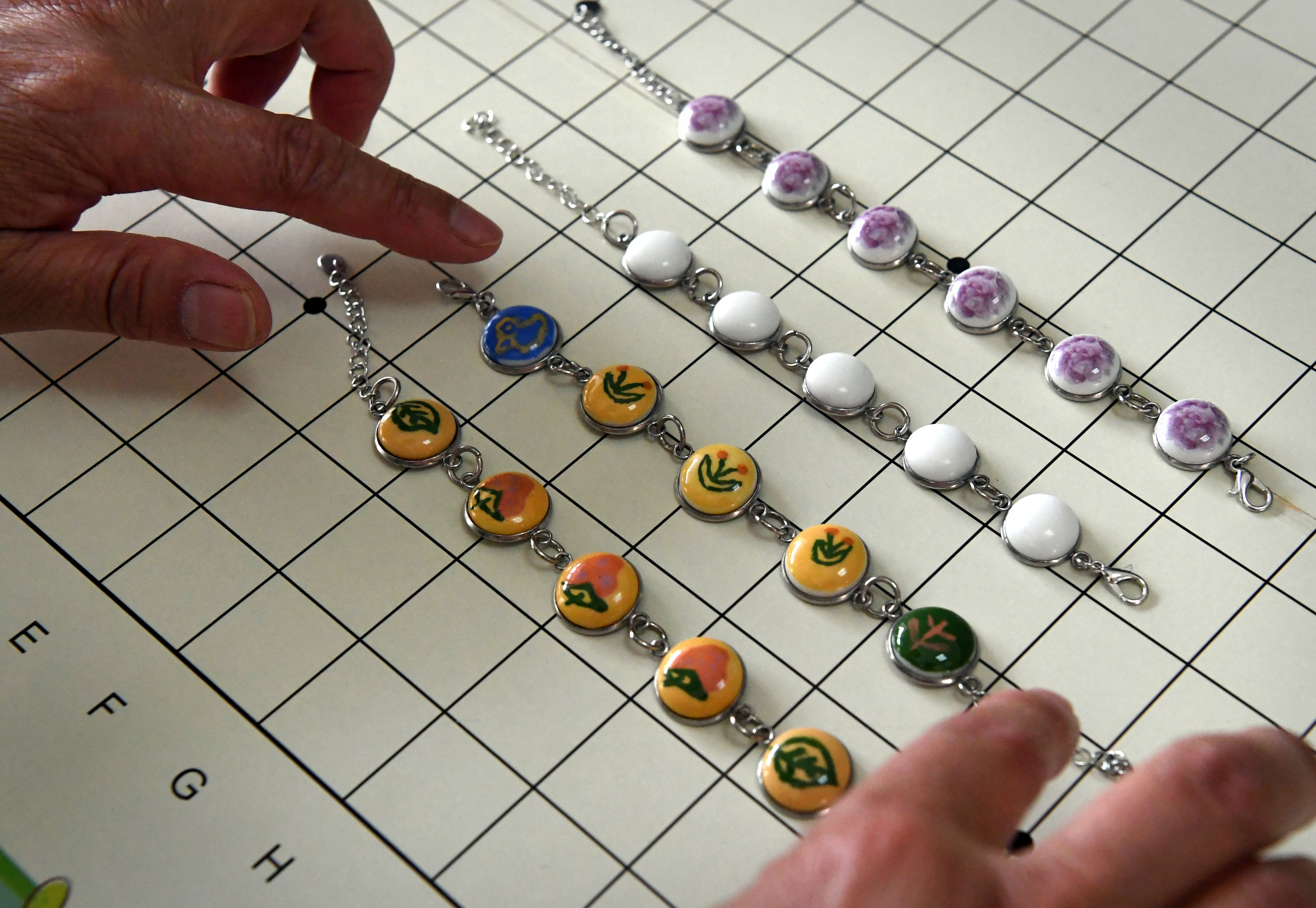 A staff member selects black pieces of Go (Weiqi) at Shuangyuan weiqi company in central China's Henan Province, May 14, 2019. (Xinhua/Li An)