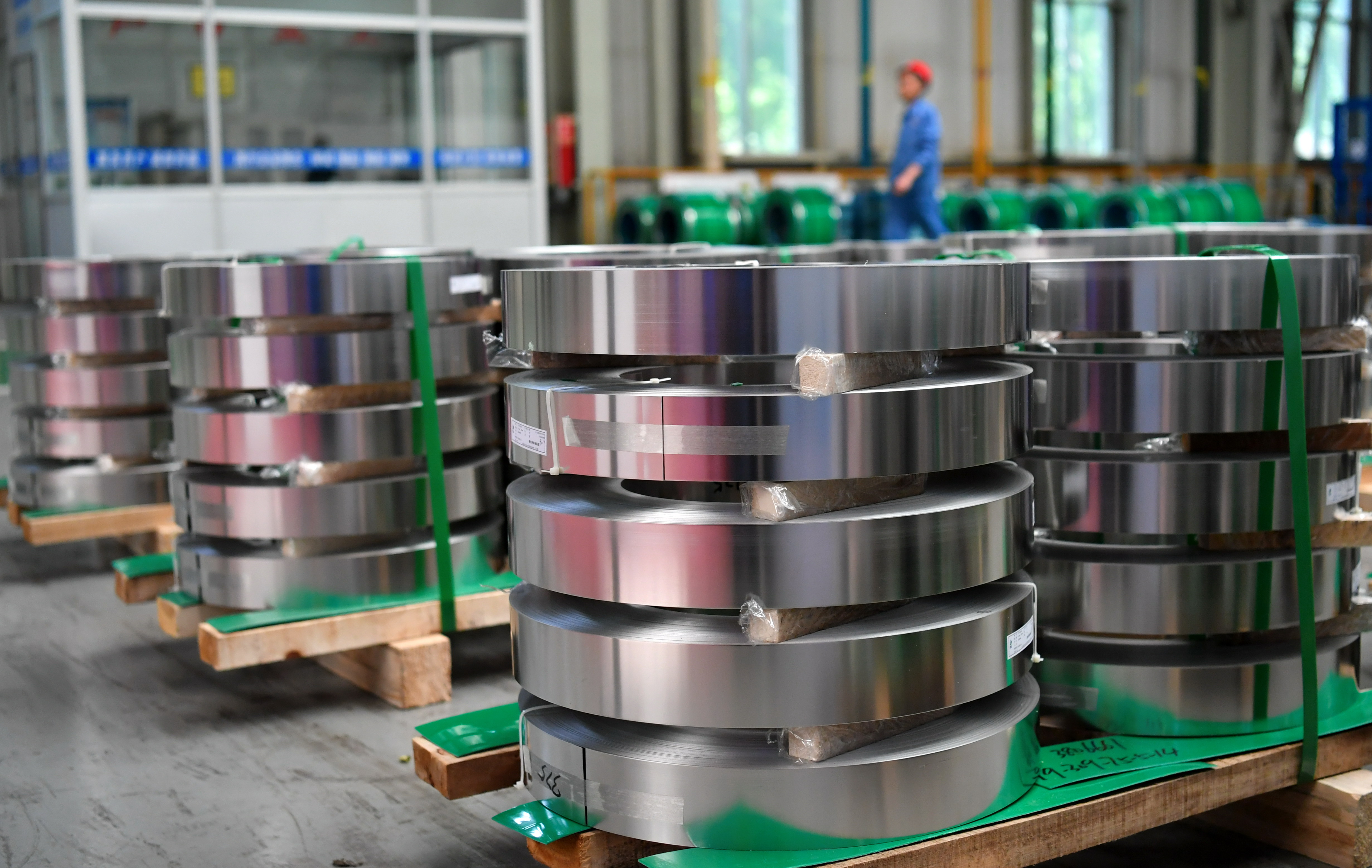 Photo taken on May 24, 2019 shows ultra-thin stainless steel strips made by Taiyuan Iron and Steel (Group), or TISCO, in Taiyuan, north China's Shanxi Province, May 24, 2019. (Xinhua)