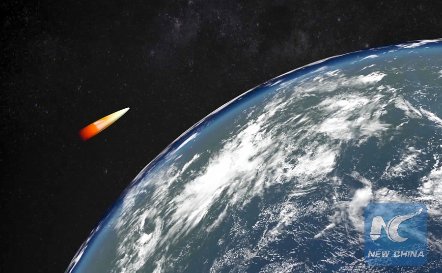 A computer simulation shows the Avangard hypersonic vehicle maneuvering to bypass missile defenses en route to target. (RU-RTR Russian Television via AP)
