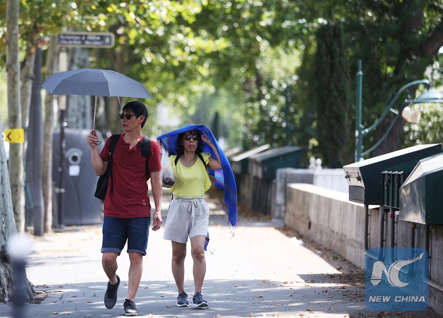 Tourists walk at the Seine River bank in Paris, France, July 25, 2019. (Xinhua/Gao Jing)