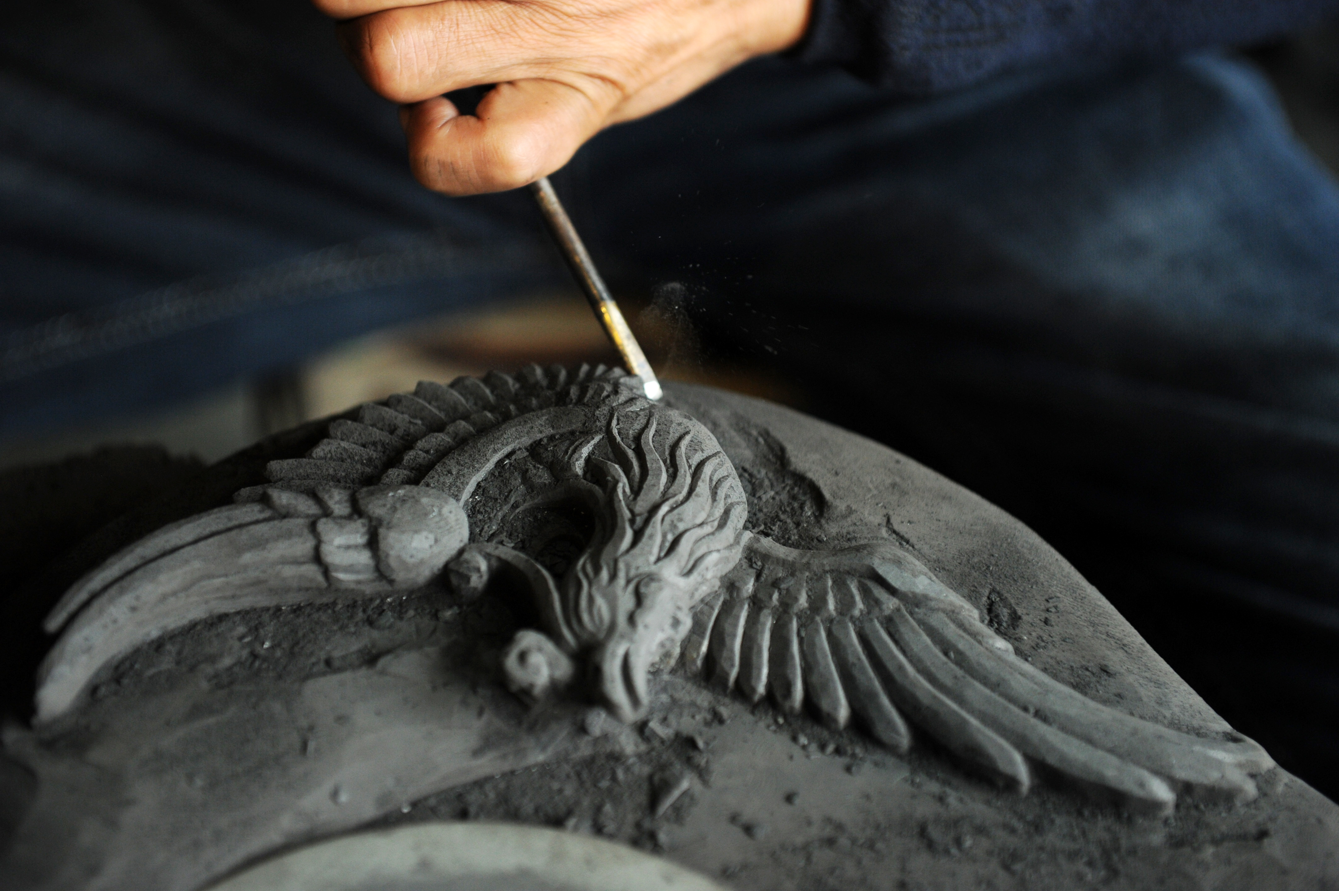 Born in a family of inkstone carving for generations, Zhou Yongping, a 50-year-old inheritor of Sizhou inkstone carving, has been fascinated by this art for over 30 years and made great efforts to perfect it.