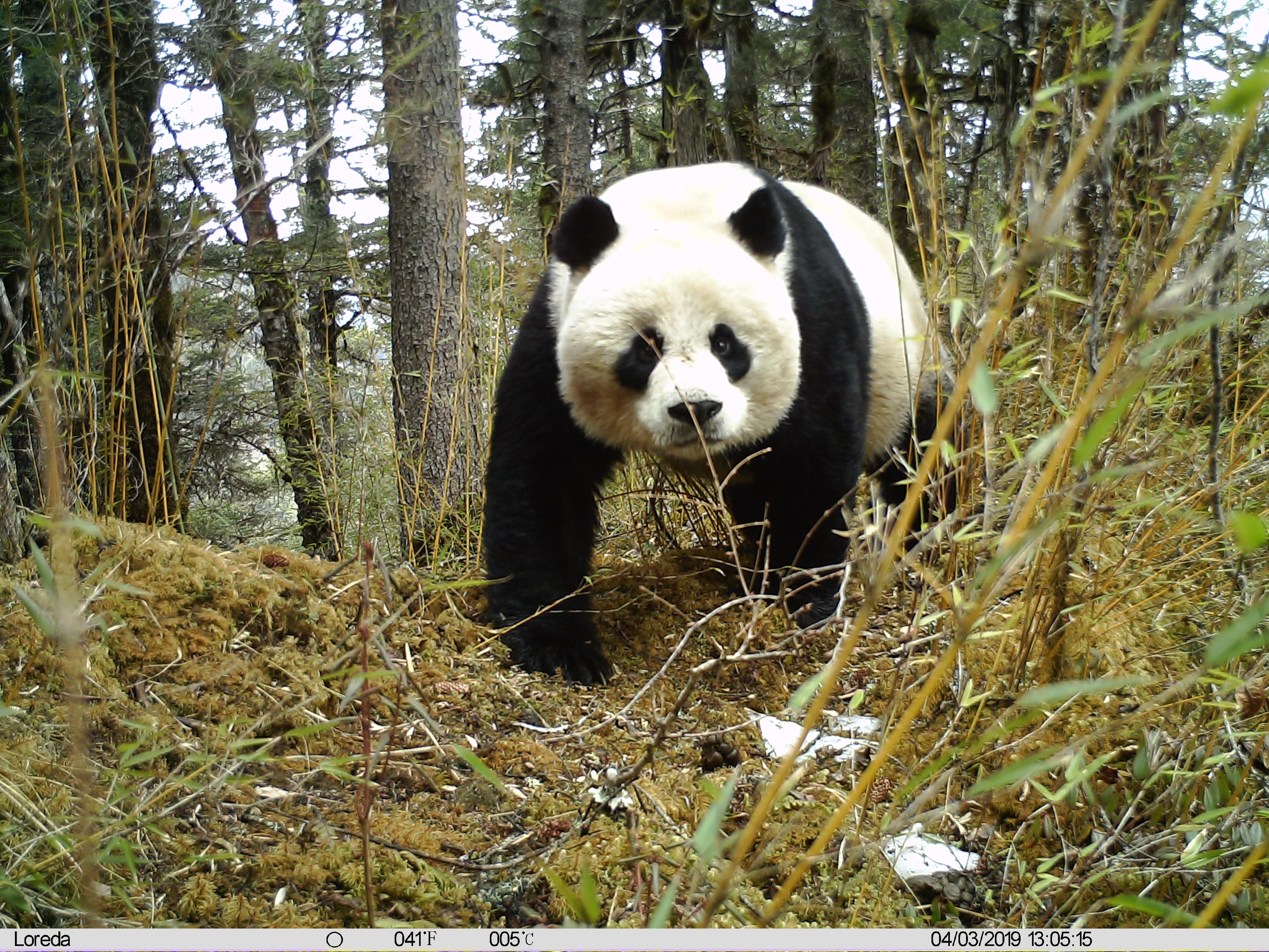 A female panda is seen in the Huanglong Nature Reserve in the Tibetan Autonomous Prefecture of Aba, southwest China's Sichuan Province, April 3, 2019. (Xinhua)