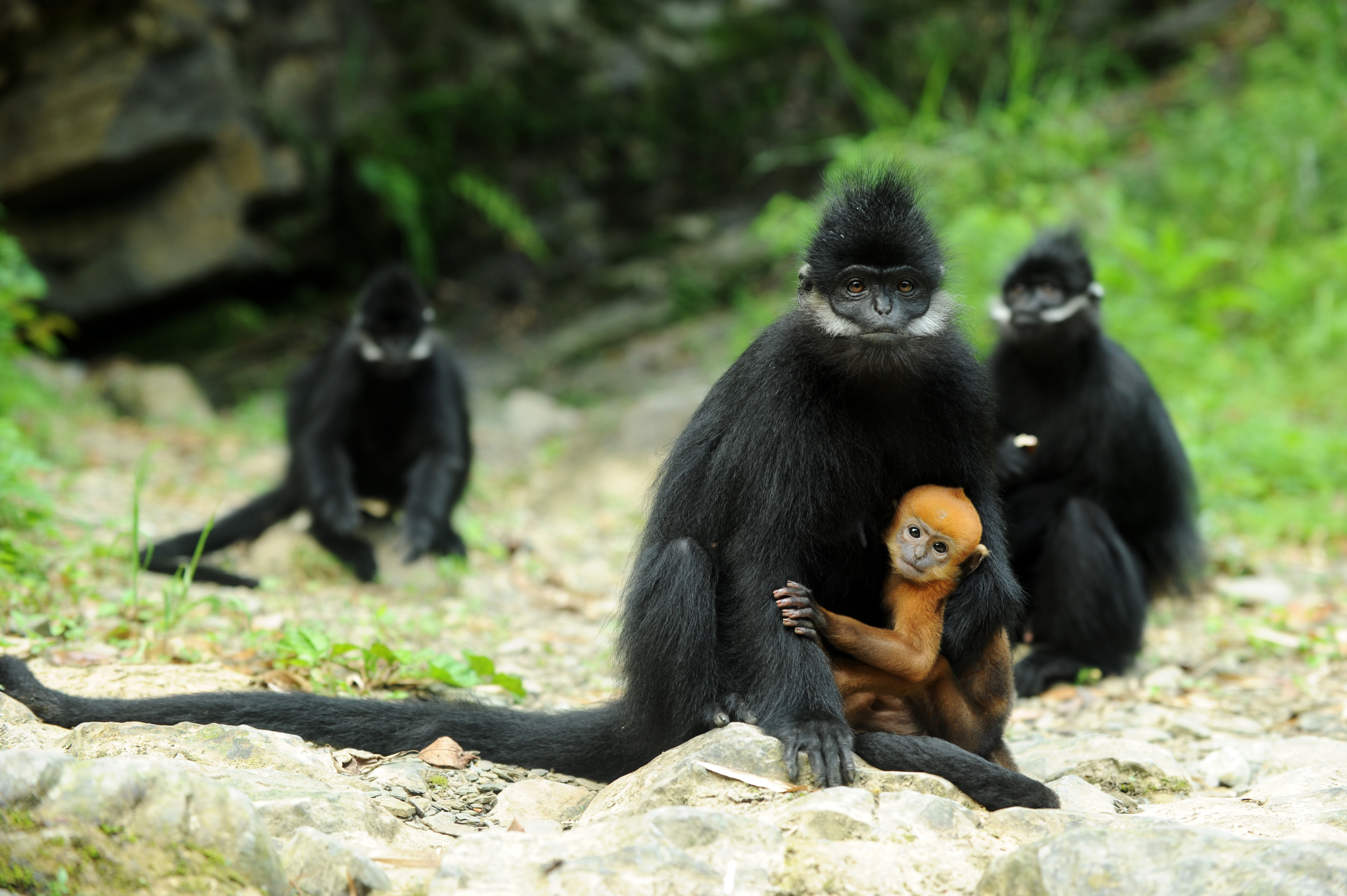 Francois's langurs, an endangered monkey species, are seen at the Mayang River National Nature Reserve in Yanhe Tujia Autonomous County, southwest China's Guizhou Province. (Xinhua/Yang Wenbin)