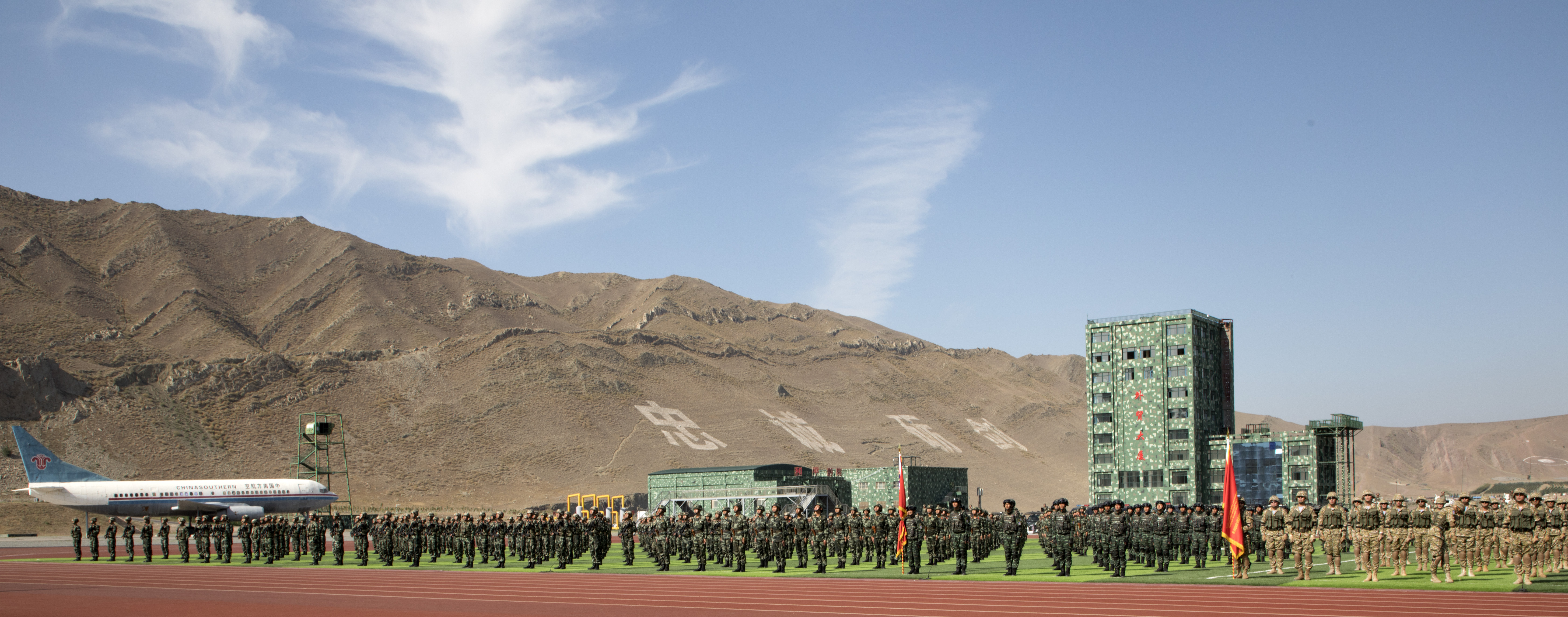Personnel from the Chinese People's Armed Police Force and the National Guard of Kyrgyzstan gather at a training base in Urumqi, northwest China's Xinjiang Uygur Autonomous Region, Aug. 6, 2019. (Xinhua/Liu Fang)