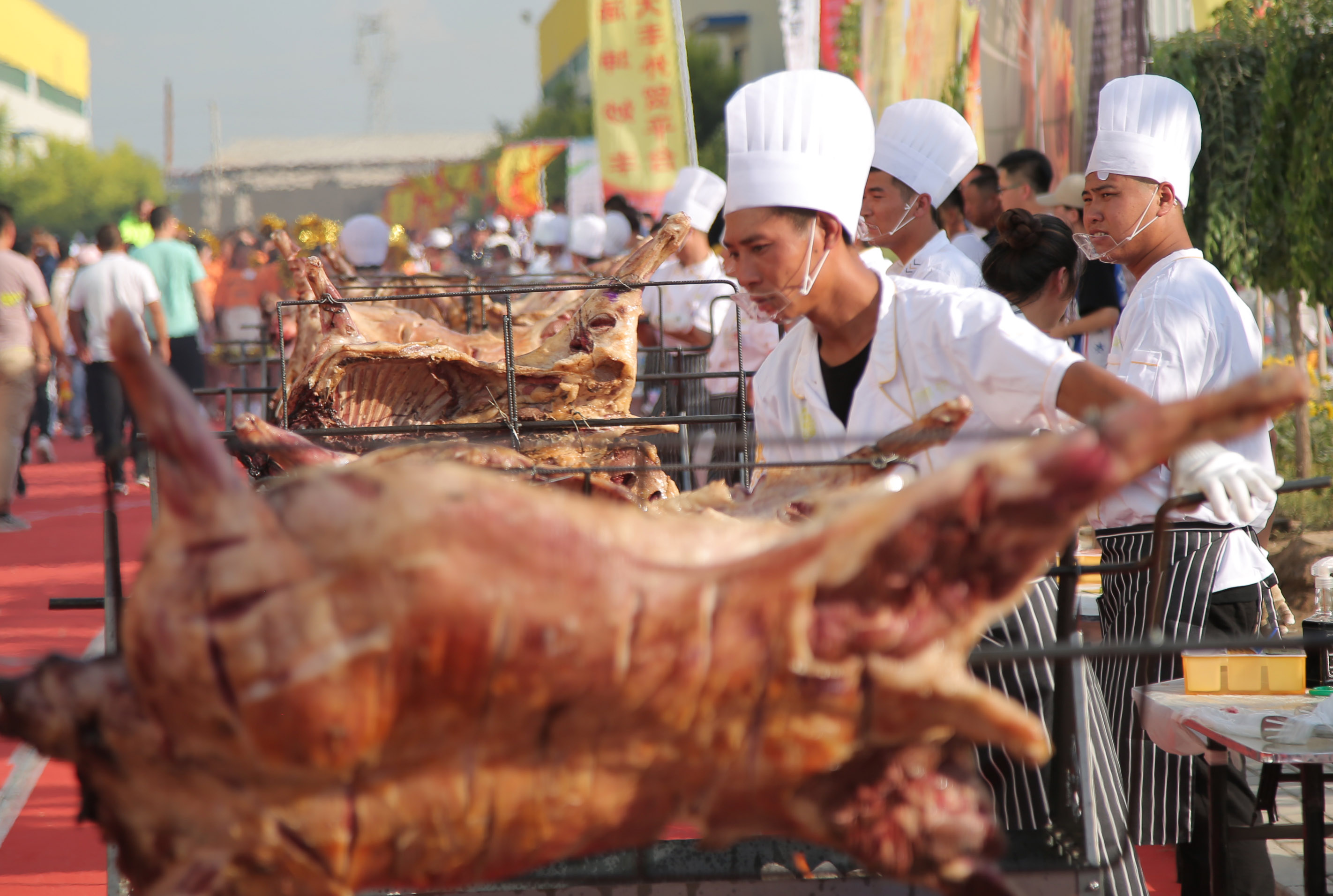 On Tuesday, Jinmai Lift Technology Co., organizer of the activity, was awarded a Guinness World Records certificate for "most lambs spit-roasted simultaneously."