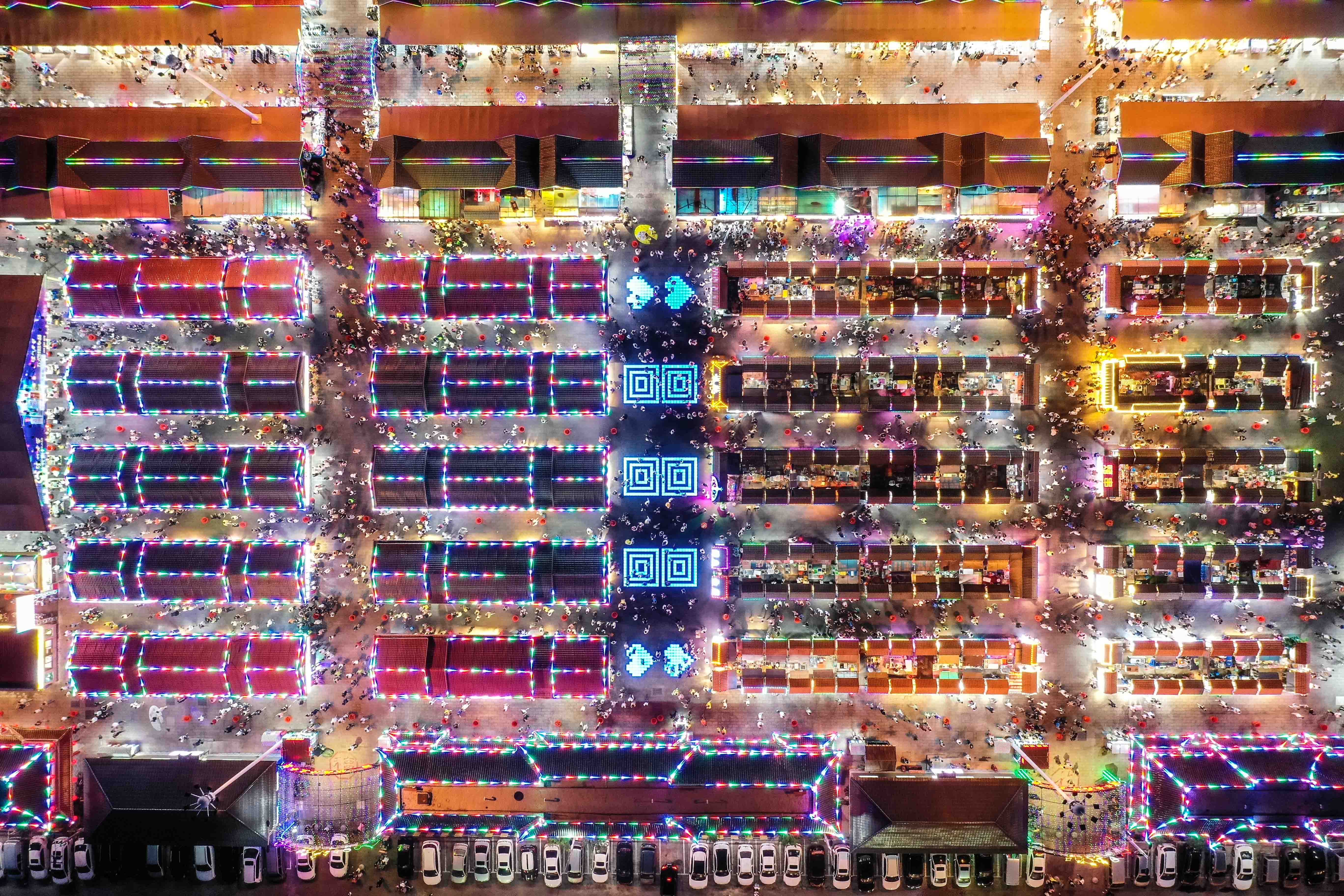 Aerial photo shows an international night market in Shenyang, capital of northeast China's Liaoning Province. (Xinhua/Pan Yulong)