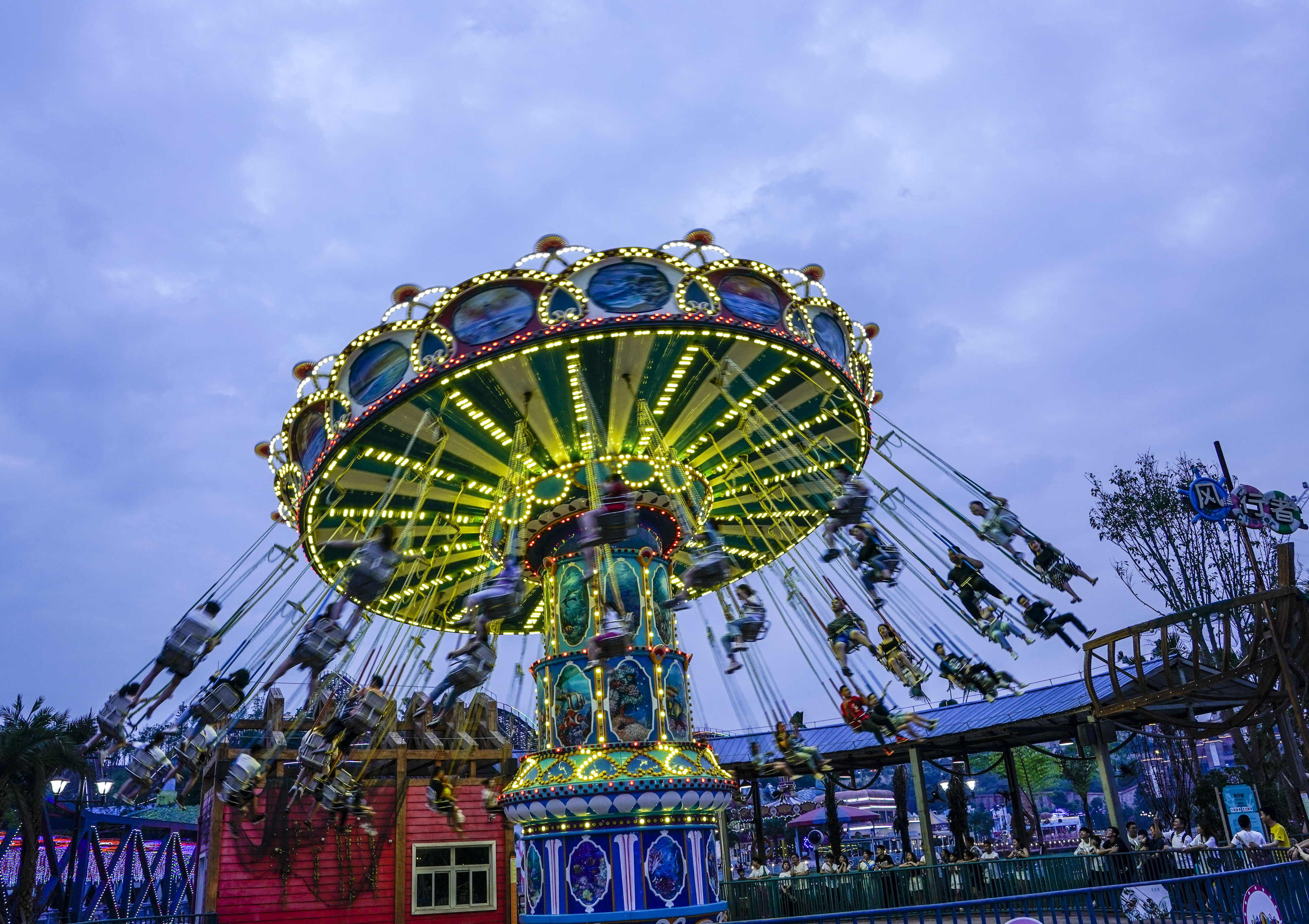 Visitors have fun at an amusement park in the evening in southwest China's Chongqing. (Xinhua/Liu Chan)