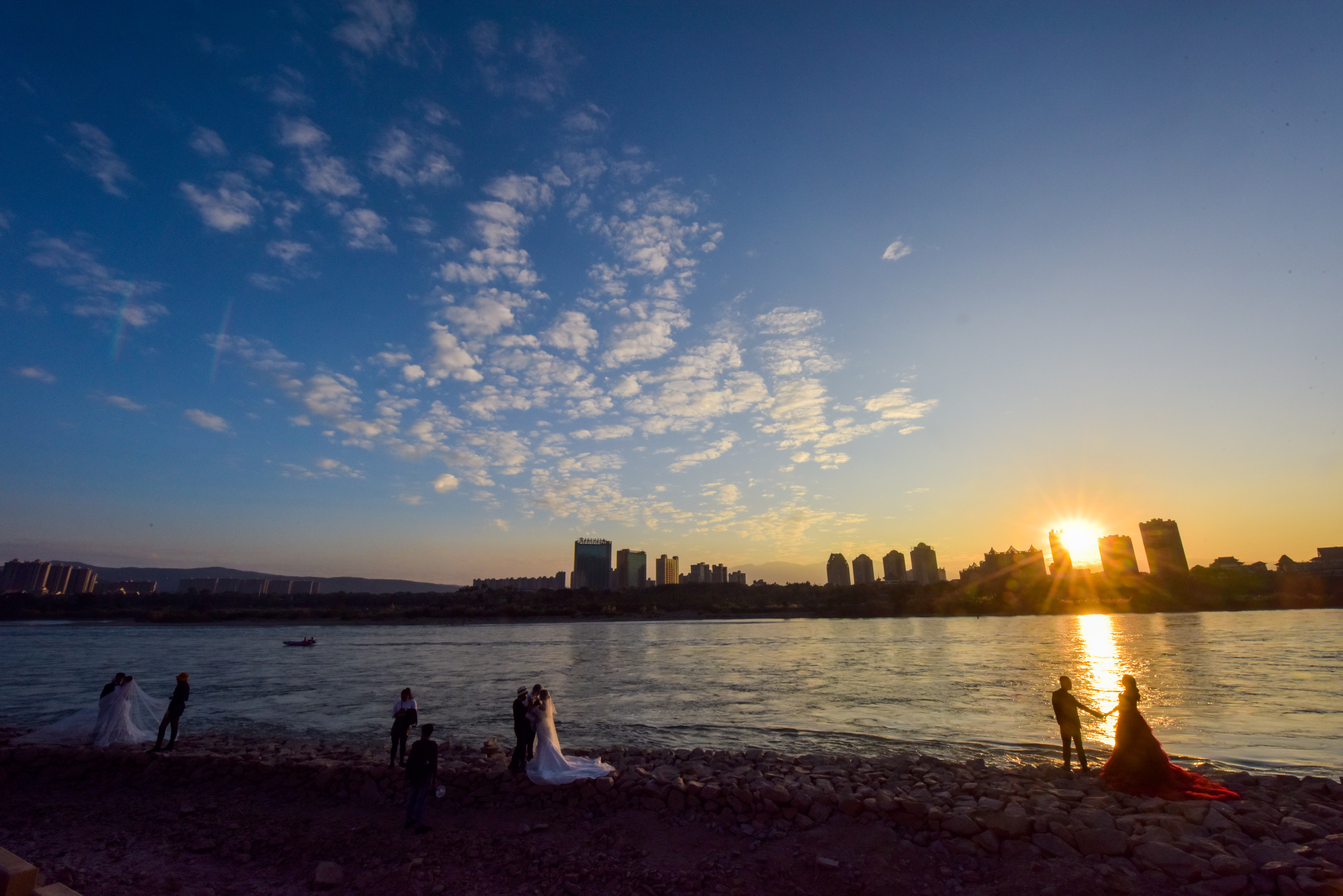 People take wedding photos on the bank of the Lancang River in Jinghong, southwest China's Yunnan Province. (Xinhua/Jiang Wenyao)