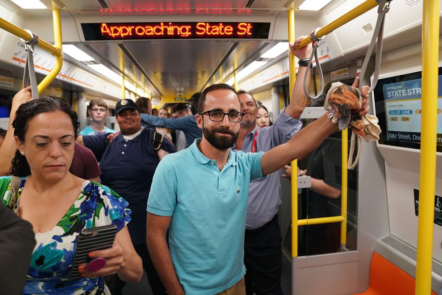 Passengers are seen in a new subway car in Boston, Massachusetts, the United States, on Aug. 14, 2019. (Xinhua/Liu Jie)
