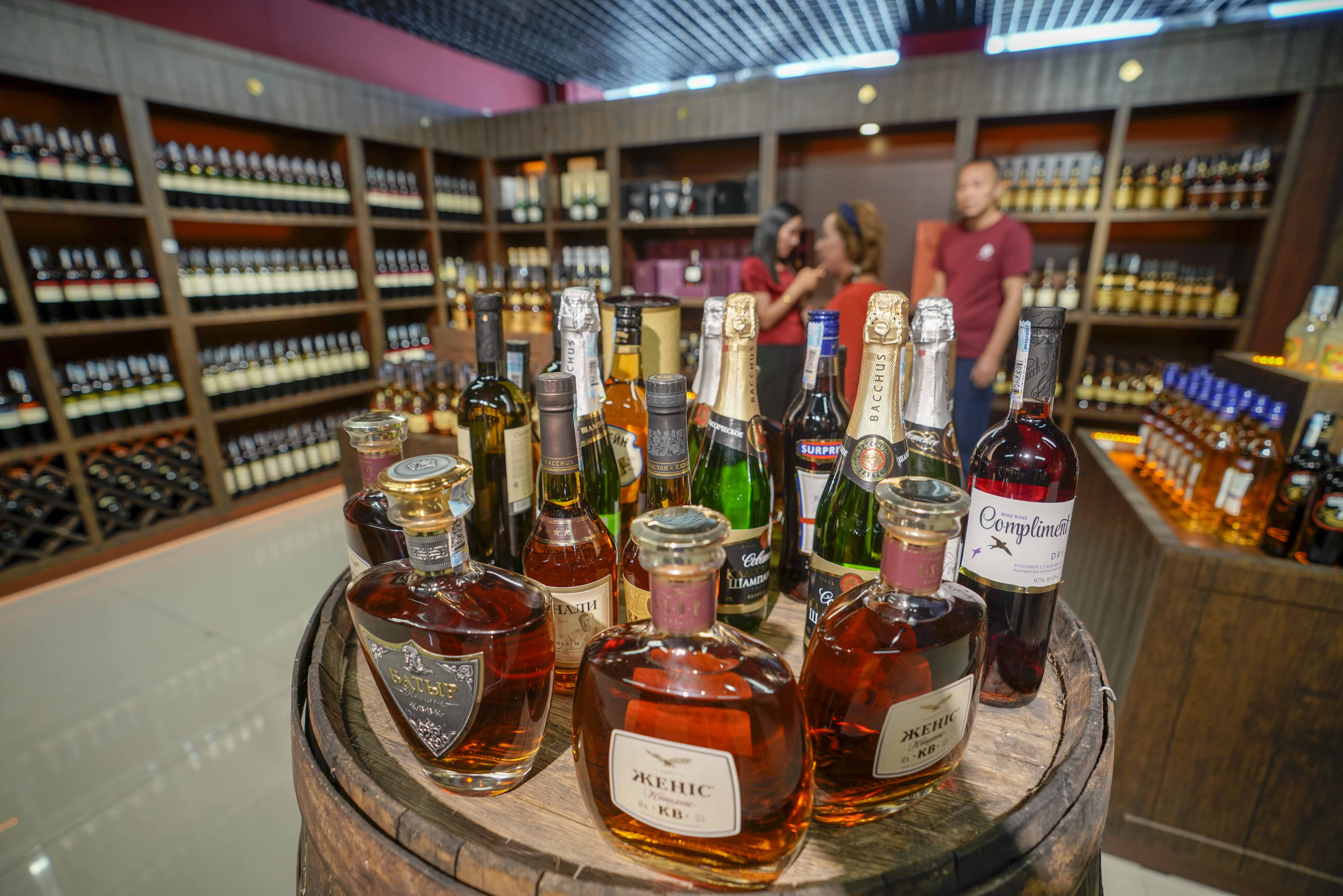"It's duty-free, so many customers come here. That's why I wanted to open my shop here," says Kasym, who has also had farms and restaurants in Kazakhstan, "The peak season is from April to December. I can sell 20,000 to 30,000 bottles of wine in a month."