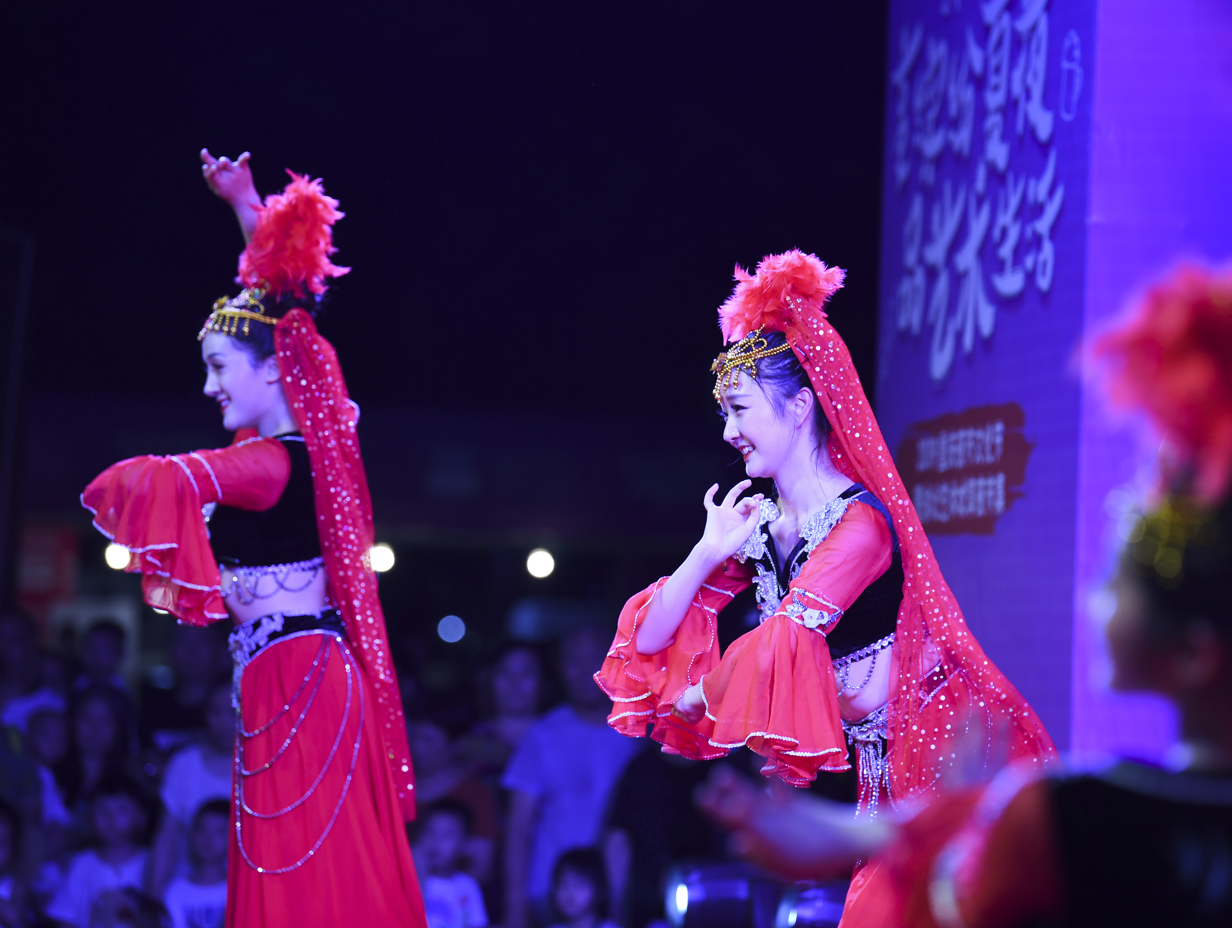 Actresses dance at a night market in Yubei District of SW China's Chongqing Municipality. (Xinhua/Wang Quanchao)