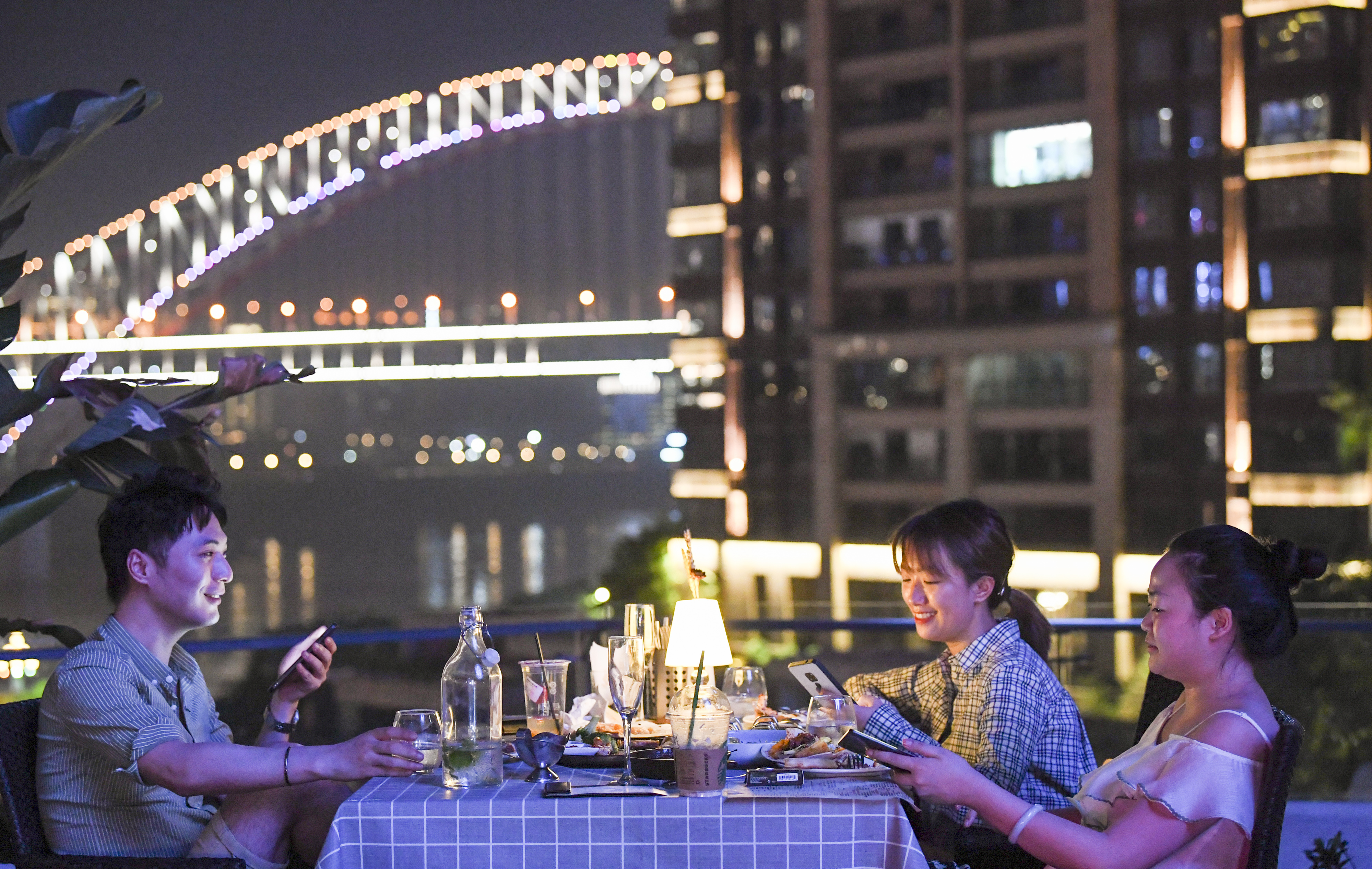 Customers enjoy dinner at a Western-style restaurant in Nan'an District of SW China's Chongqing Municipality. (Xinhua/Wang Quanchao)