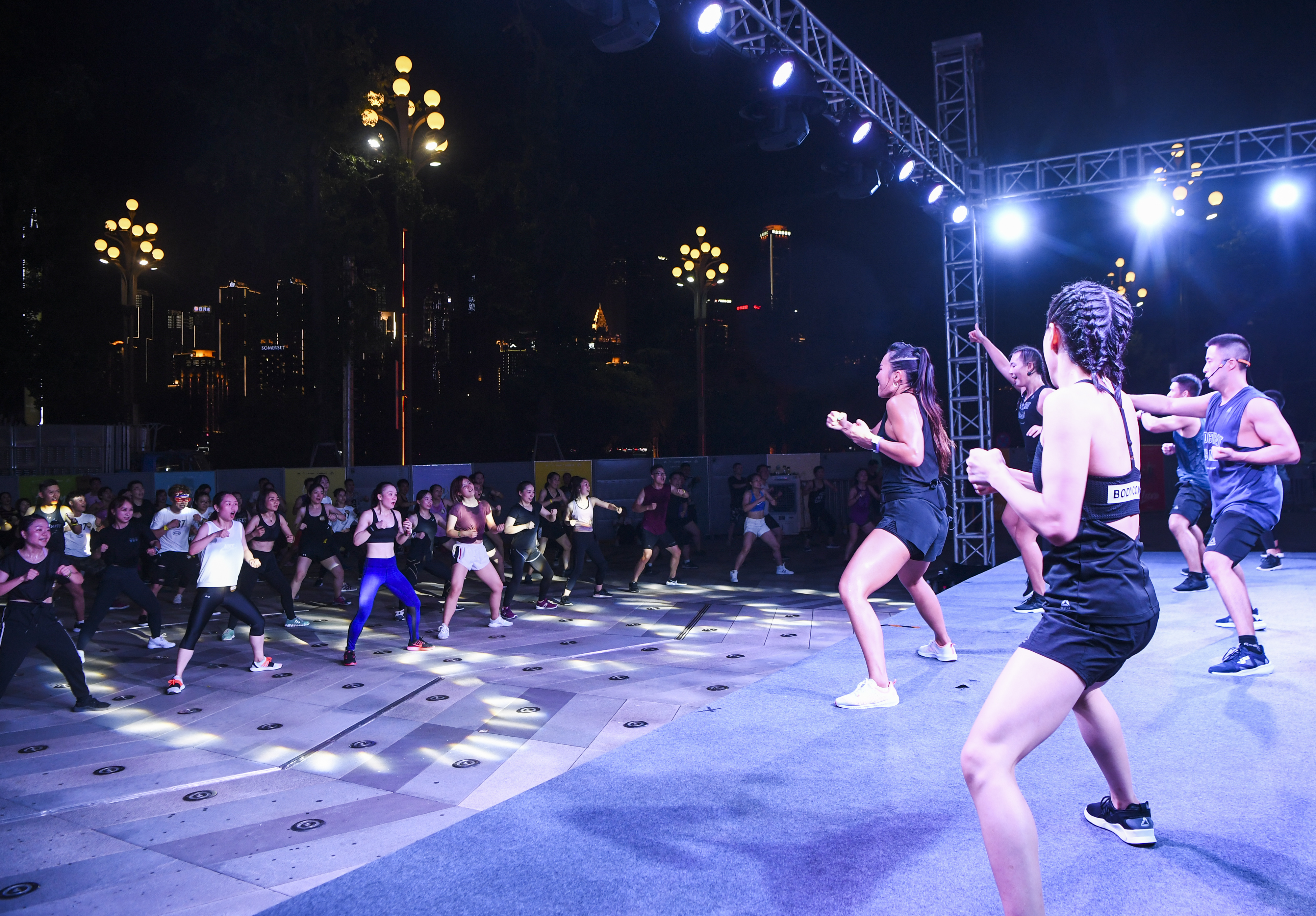 People take part in a party workout in Nan'an District of SW China's Chongqing Municipality. (Xinhua/Wang Quanchao)