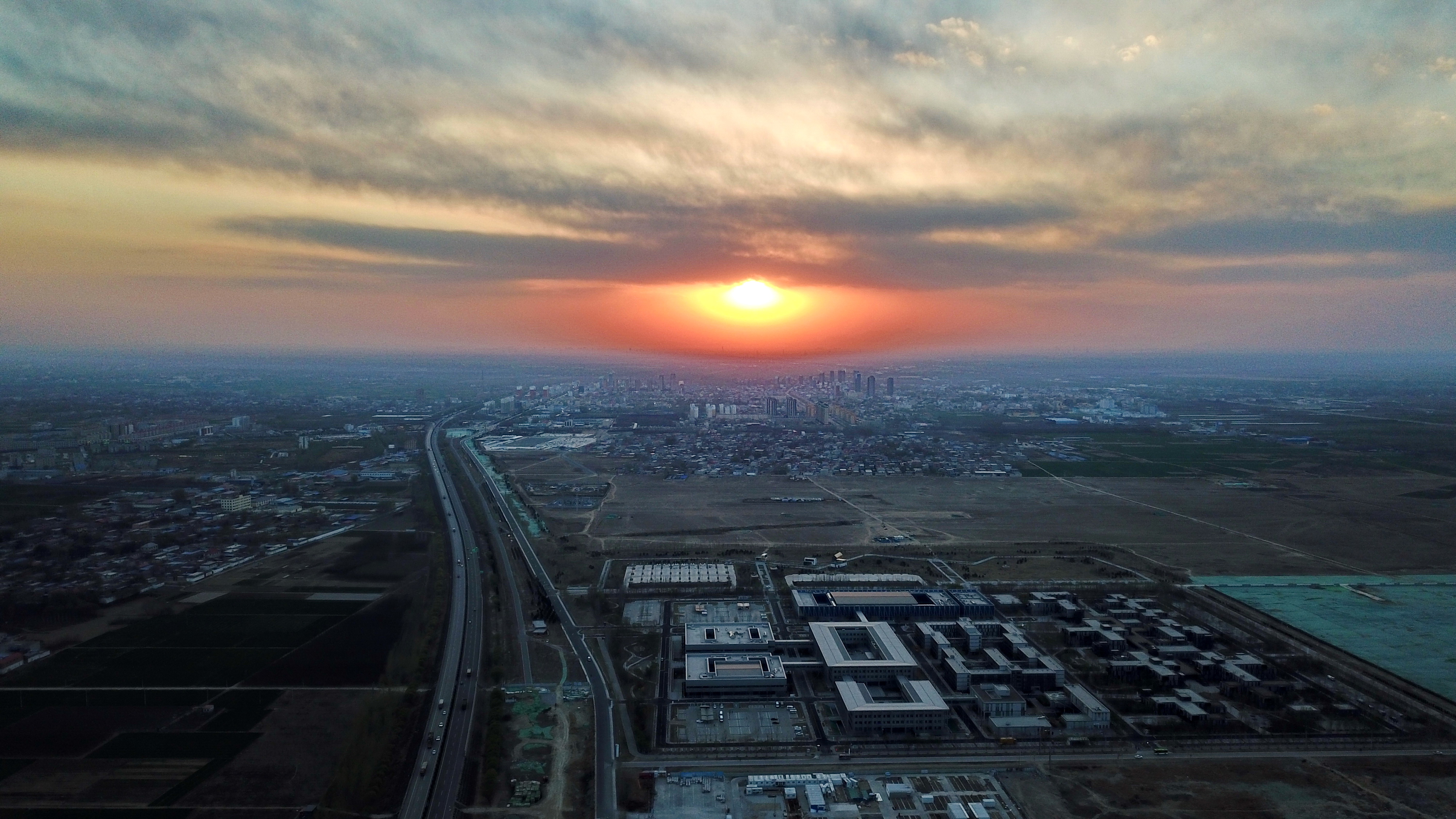 Aerial photo taken on March 31, 2019 shows the Xiongan citizen service center in Xiongan New Area, north China's Hebei Province. China announced plans in 2017 to establish the Xiongan New Area, located about 100 km southwest of Beijing. Xiongan has been designed to become a zone for innovation, a digital city synchronized with a brick-and-mortar one, and a livable and business-friendly area. (Xinhua/Mu Yu)