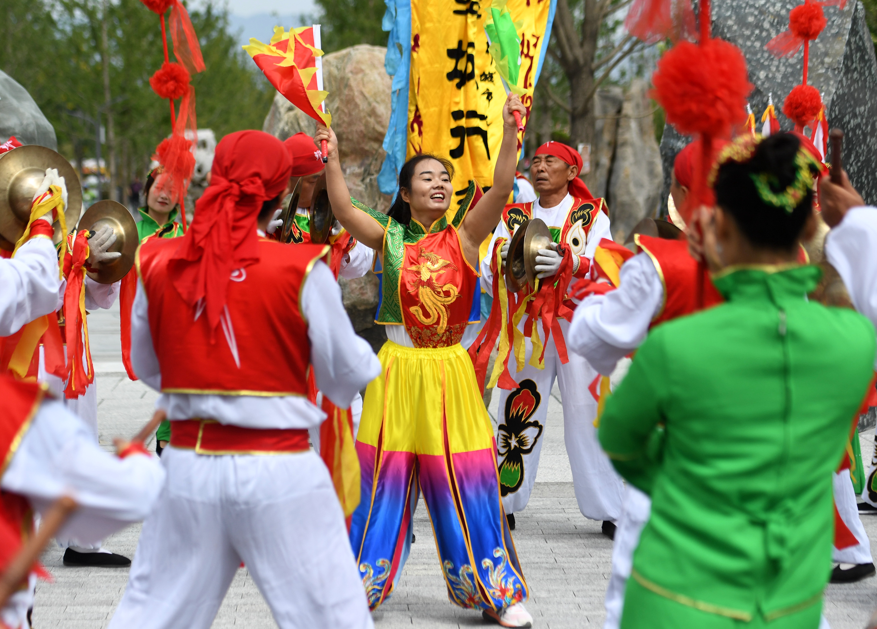 Troupers perform during the "Shaanxi Day" event at the Beijing International Horticultural Exhibition in Beijing, Aug. 22, 2019. The expo held the "Shaanxi Day" event on Thursday. (Xinhua/Zhang Chenlin)