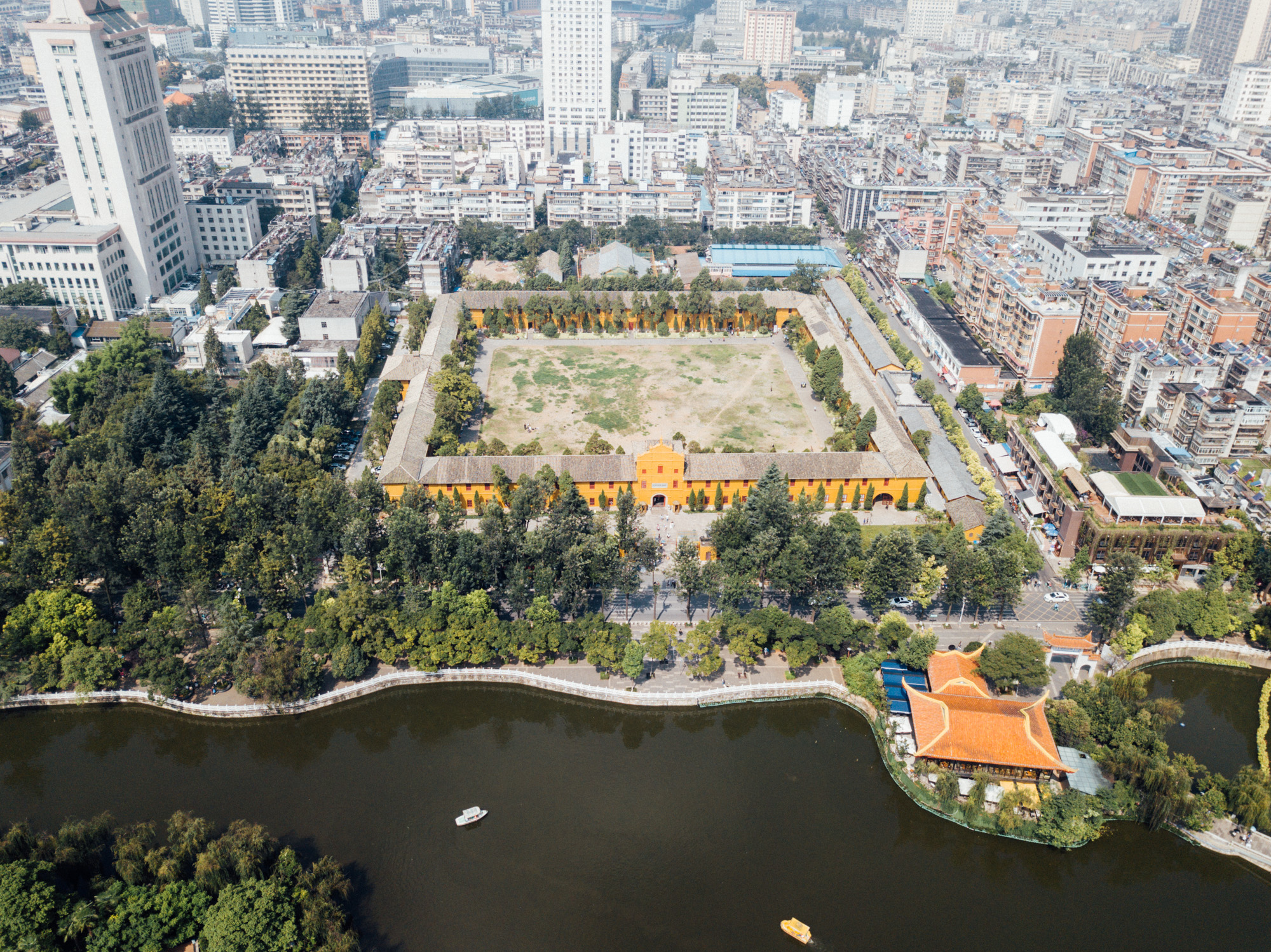 Kunming is located at the northern edge of Dianchi Lake, surrounded by temples and lake-and-limestone hill landscapes.