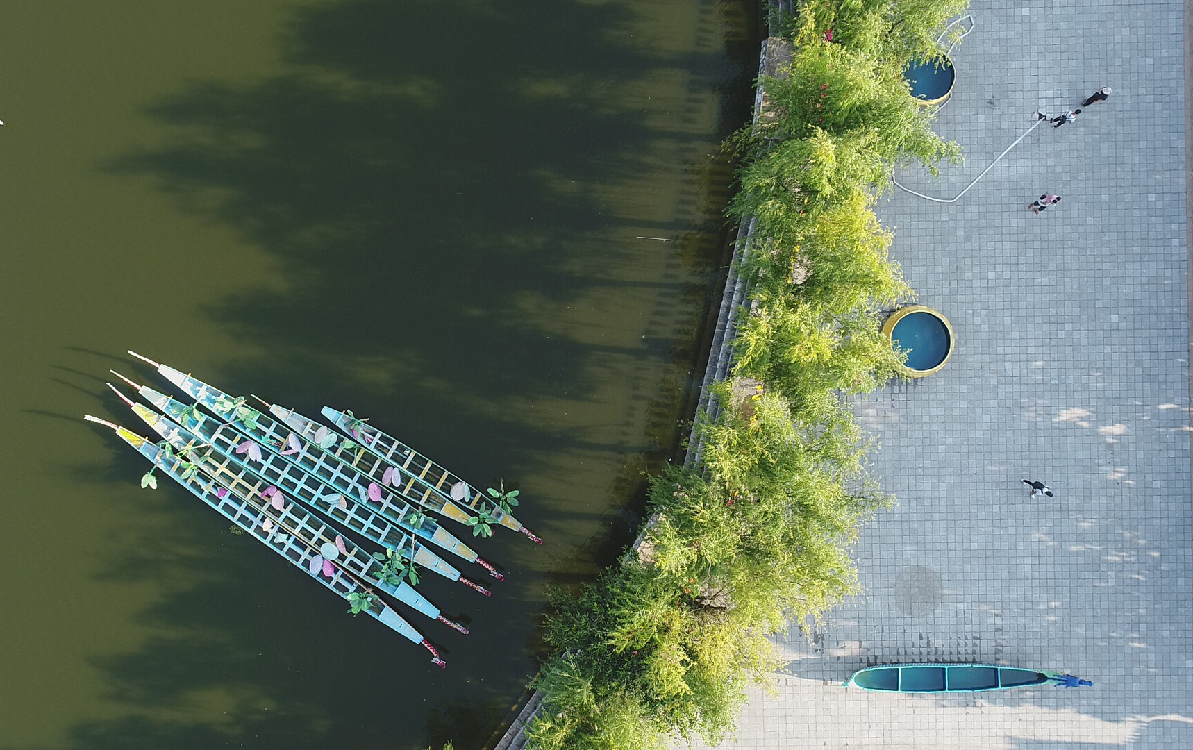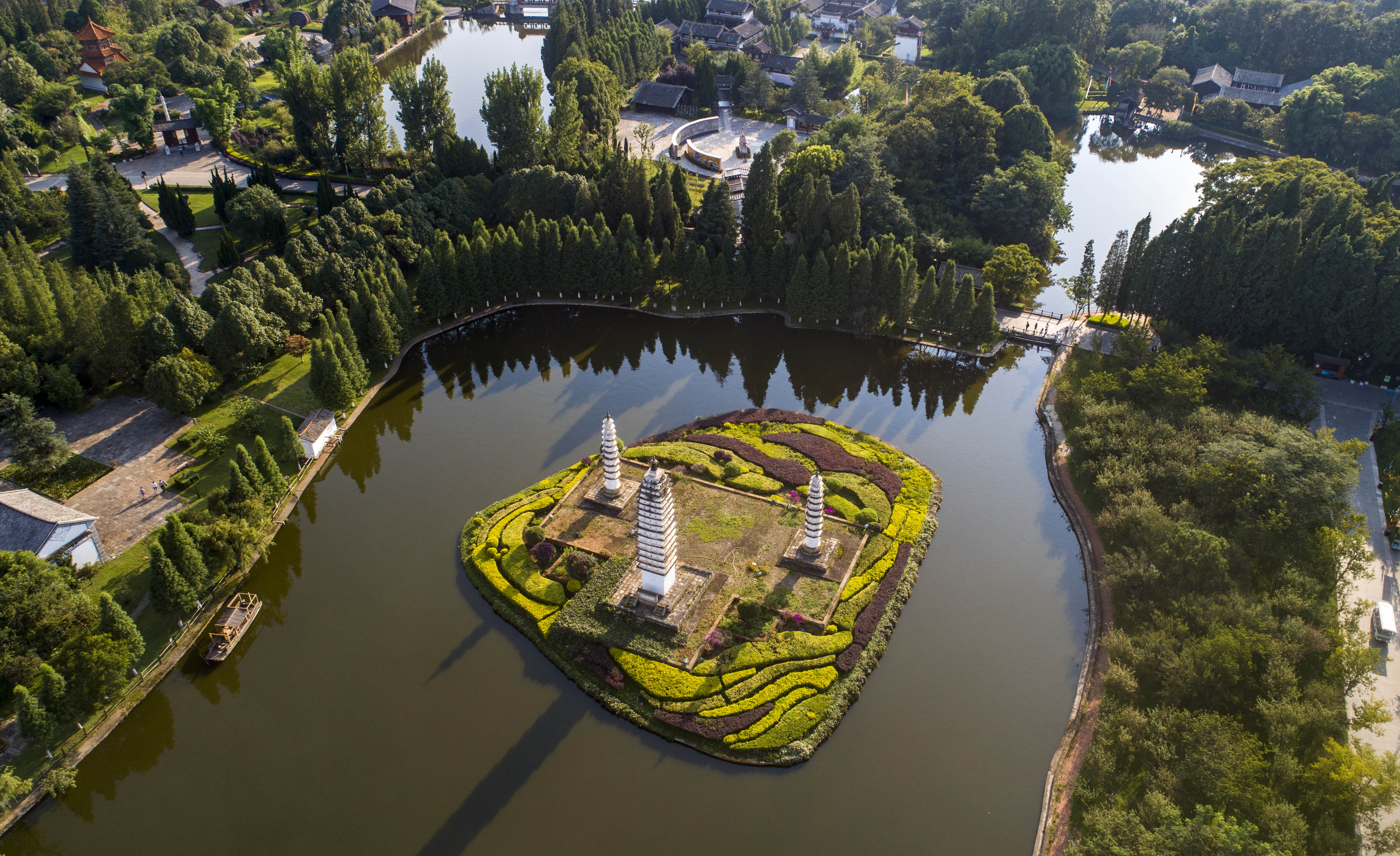 Boats moored at the Yunnan ethnic culture village in Kunming, Aug. 15, 2019. (Xinhua/Zhang Fan)