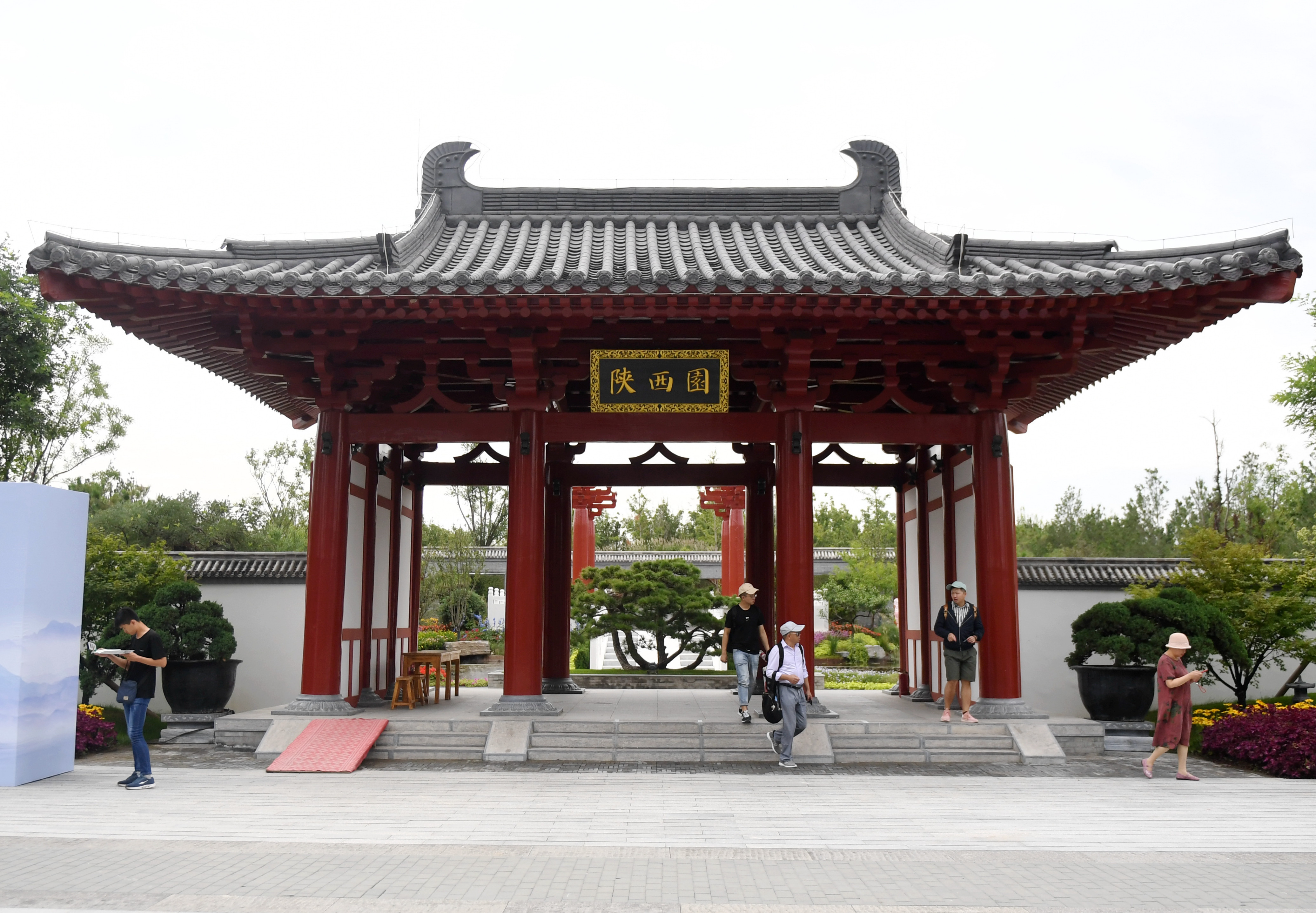 Visitors are seen at the Shaanxi Garden at the Beijing International Horticultural Exhibition in Beijing, capital of China, Aug. 22, 2019. (Xinhua/Zhang Chenlin)