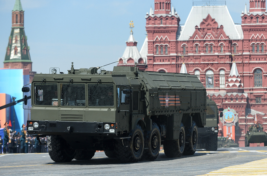 Iskander ballistic missile system launching vehicles move across the Red Square during the military parade marking the 70th anniversary of the victory in the Great Patriotic War, in Moscow, Russia, May 9, 2015. (Xinhua/Jia Yuchen)
