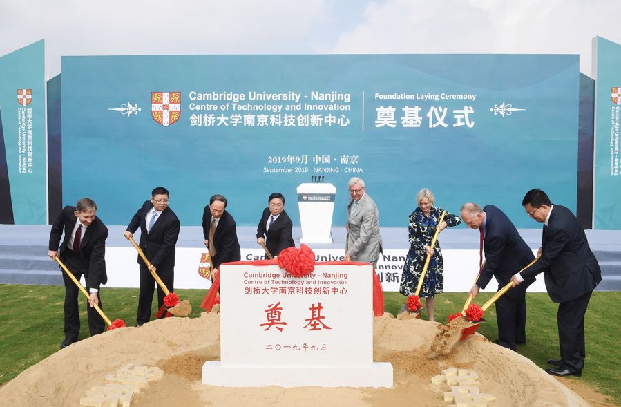 Photo shows a groundbreaking ceremony for a technology and innovation center jointly established by the University of Cambridge and the Nanjing Municipal government held in Nanjing, capital of eastern China's Jiangsu Province on Sept. 10, 2019. (Photo provided to Xinhua)