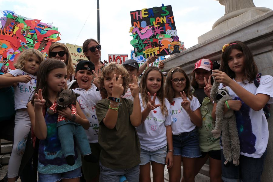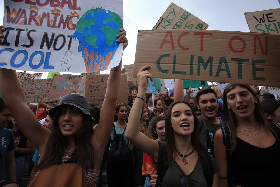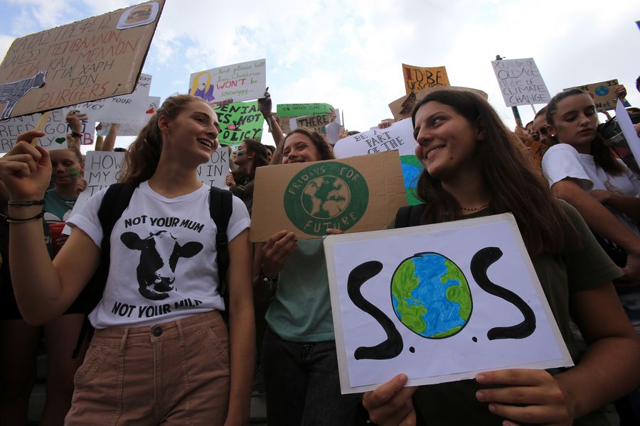Greek students take part in a school strike for climate change in Athens, Greece, on Sept. 20, 2019.(Xinhua/Marios Lolos)