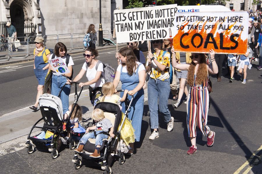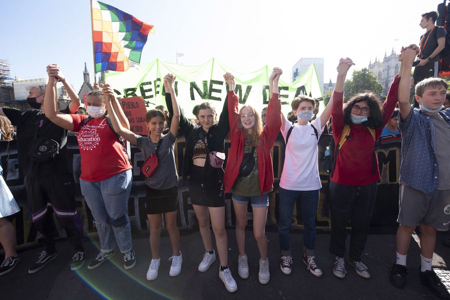 Protesters take part in the Global Climate Strike protest in central London, Britain, on Sept. 20, 2019. (Photo by Ray Tang/Xinhua)