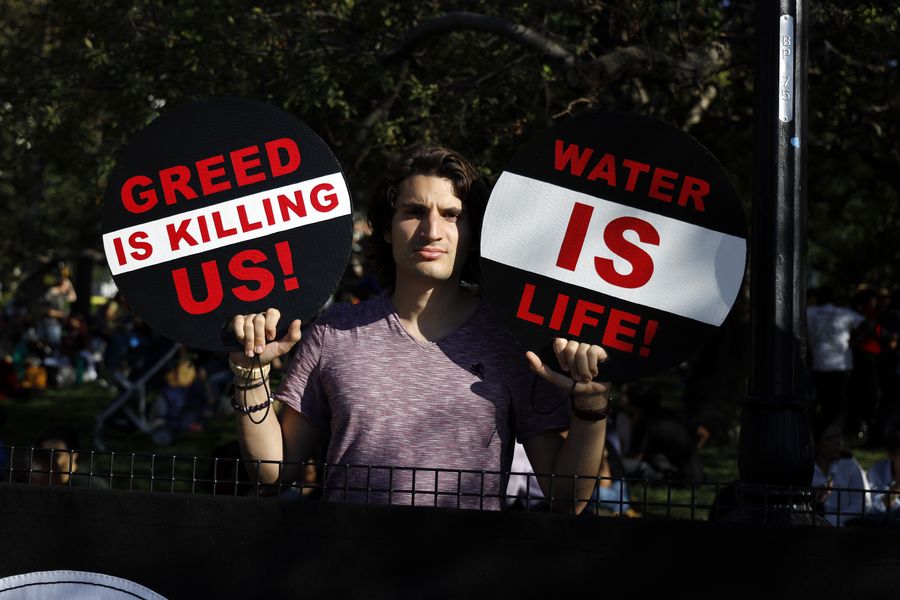 A man participates in a strike to call attention to climate change in New York, the United States, on Sept. 20, 2019. (Xinhua/Li Muzi)