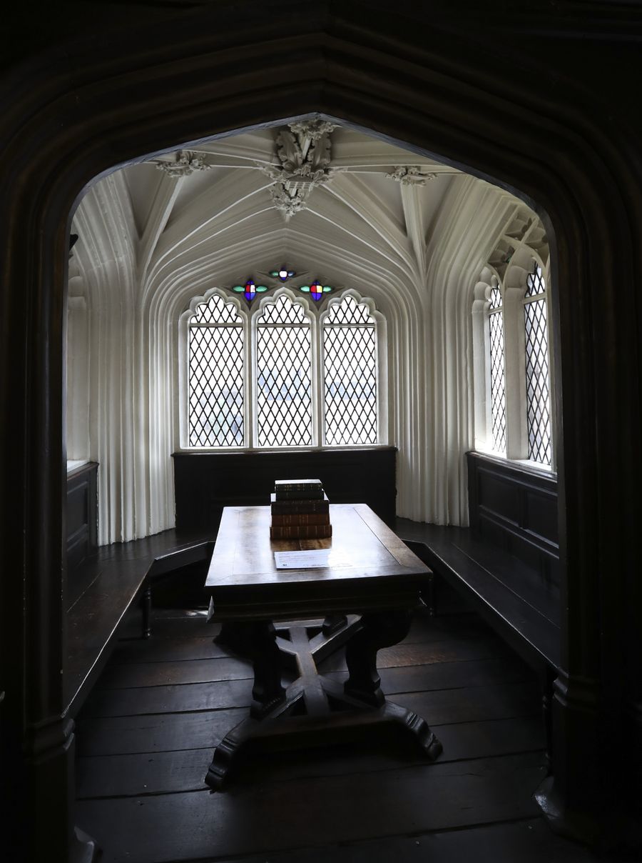 Photo taken on April 16, 2018 shows the interior of Chetham's Library in Manchester, Britain. (Xinhua/Han Yan)