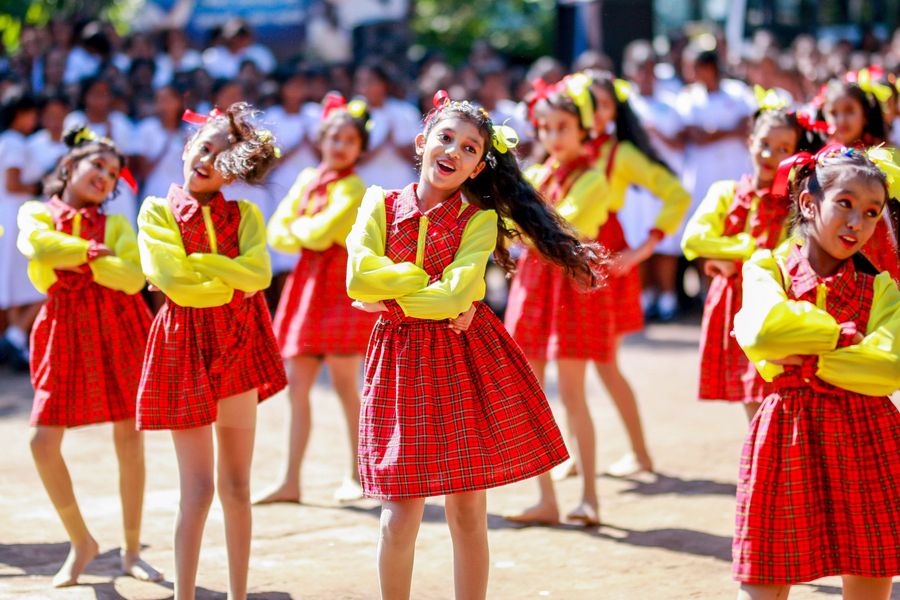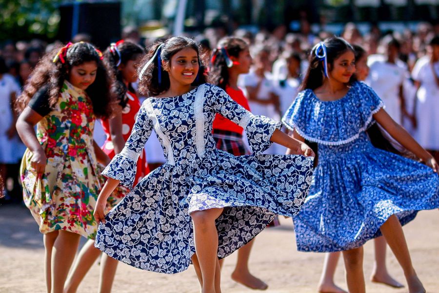Students perform to celebrate Children's Day at Gothami Balika Vidyalaya in Colombo, Sri Lanka, on October 1, 2019. (Photo by Gayan Sameera/Xinhua)■