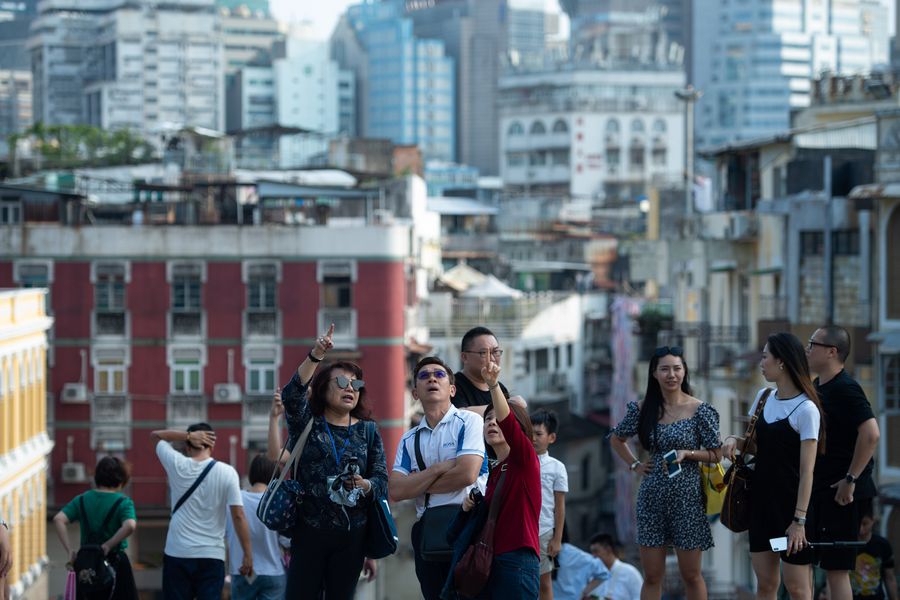 Tourists visit Mount Fortress in south China's Macao Special Administrative Region, on Oct 8, 2019. (Xinhua/Cheong Kam Ka)