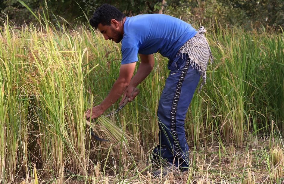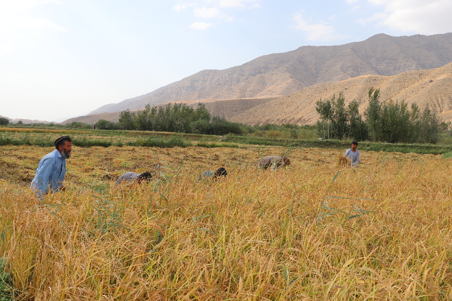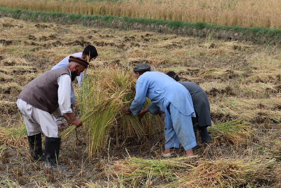 An Afghan farmer harvests rice in a paddy field in Andrab district of northern Baghlan province, Afghanistan, Oct. 8, 2019. (Xinhua/Sahel)