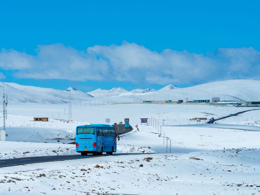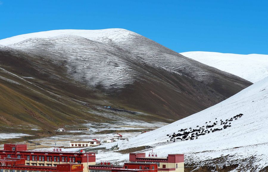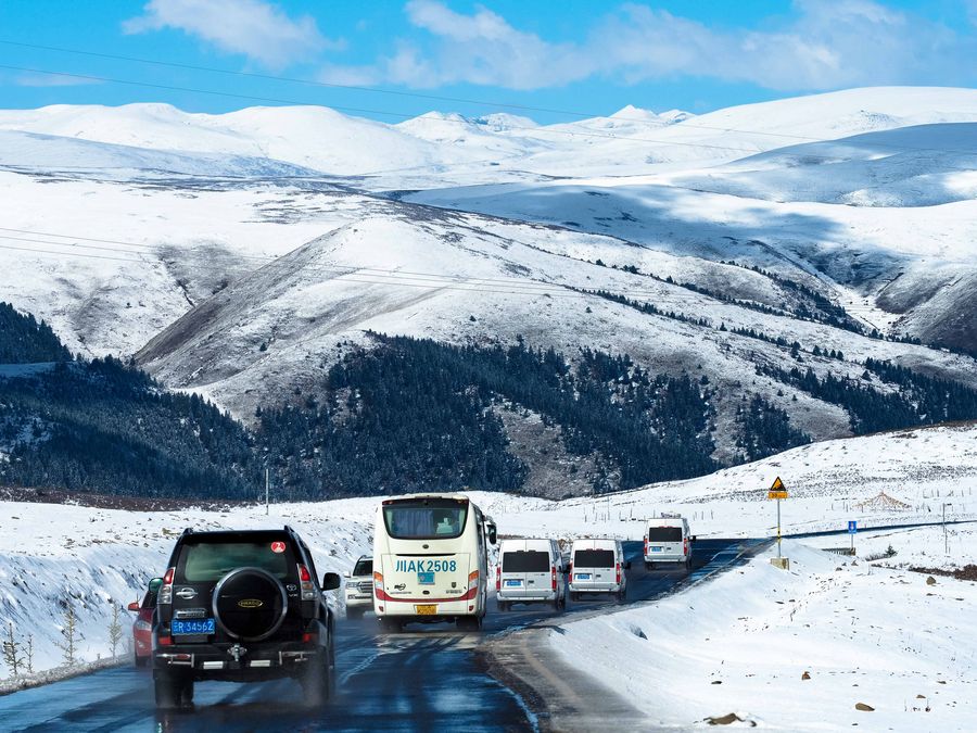 A snowy section of the Sichuan-Tibet highway, Oct. 17, 2019 (Xinhua/Wang Di)