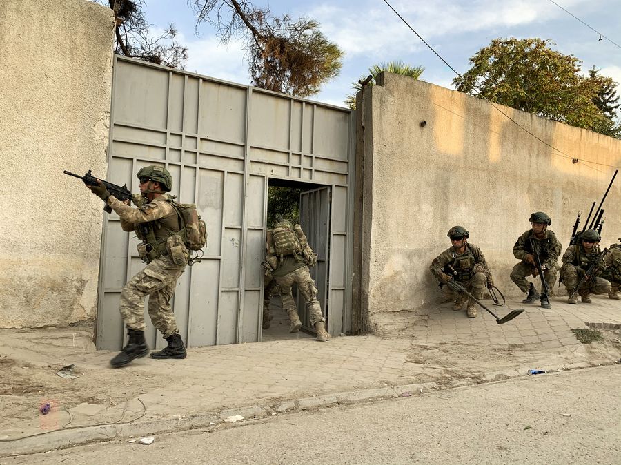 Turkish troops search for the land mines and self-made bombs deployed by Syrian Kurdish forces, after taking over the previously Kurdish-controlled border city of Tell Abyad, on Oct. 18, 2019. (Xinhua)