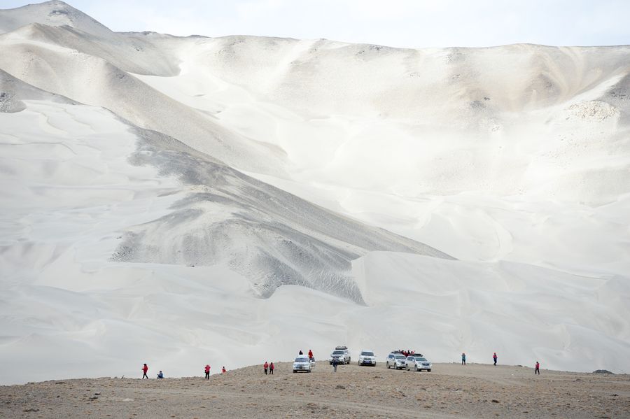 Tourists visit the Baisha Lake scenic area in Akto County, northwest China's Xinjiang Uygur Autonomous Region, Oct. 21, 2019. (Xinhua/Ding Lei)