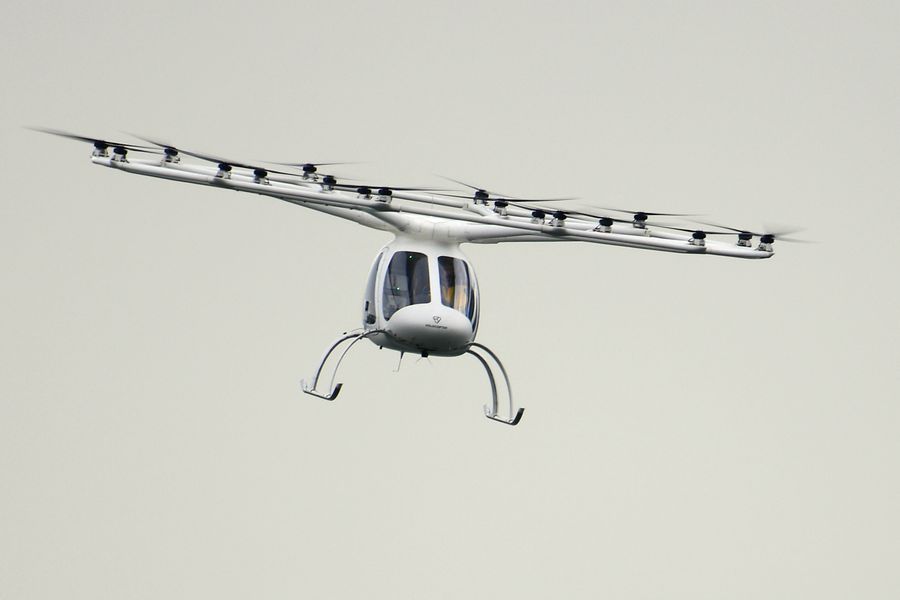 A Volocopter air taxi flies over Marina Bay in an urban test flight during the 26th Intelligent Transport Systems (ITS) World Congress in Singapore, on Oct 22, 2019. (Xinhua/Then Chih Wey)