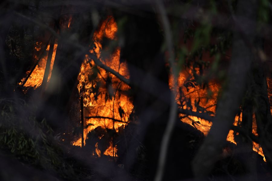 Photo taken on Oct. 24, 2019 shows a fire in Sonoma County, northern California. (Photo by Li Jianguo/Xinhua)