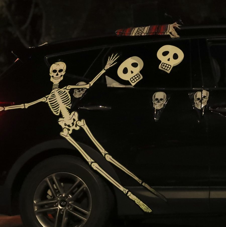 A caravan decorated for Halloween is seen during Anaheim Halloween Parade, Oct. 26, 2019. (Xinhua/Li Ying)