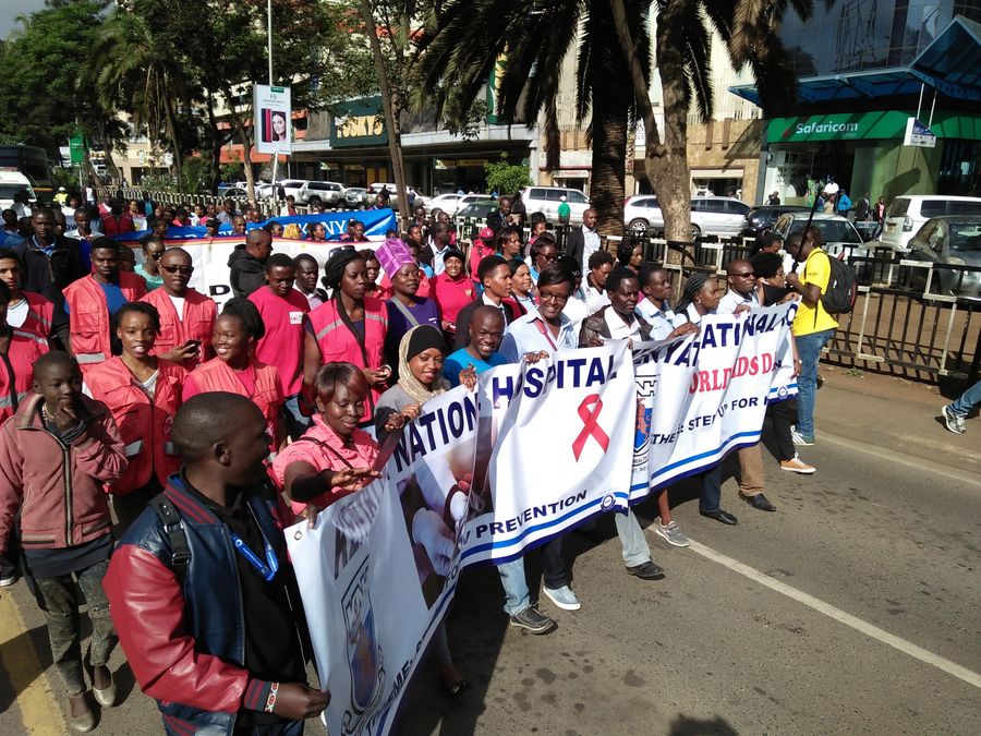 Participants take part in a walk to celebrate World Aids Day in Nairobi, capital of Kenya, Dec. 1, 2017. (Xinhua/Charles Onyango)