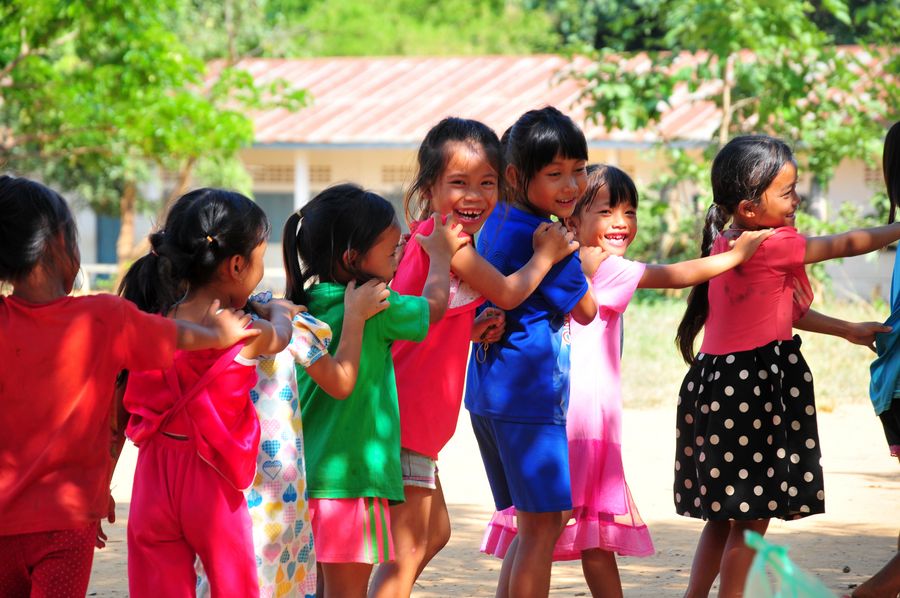 Children play on the playground at Ban Xor School in Sangthong district, Vientiane, Laos, Nov. 22, 2019. (Xinhua/Zhang Jianhua)